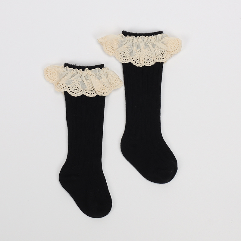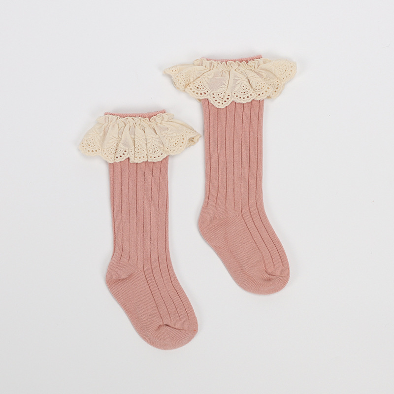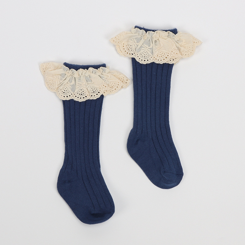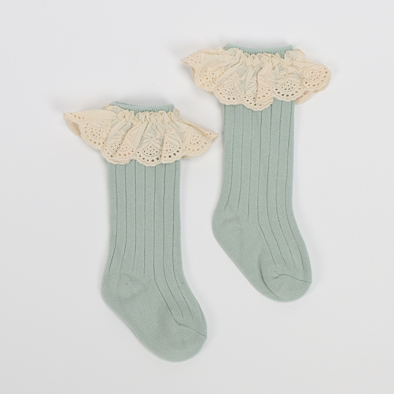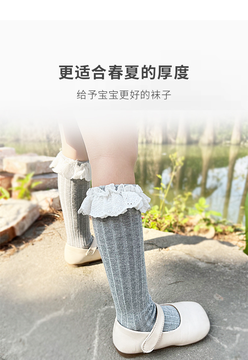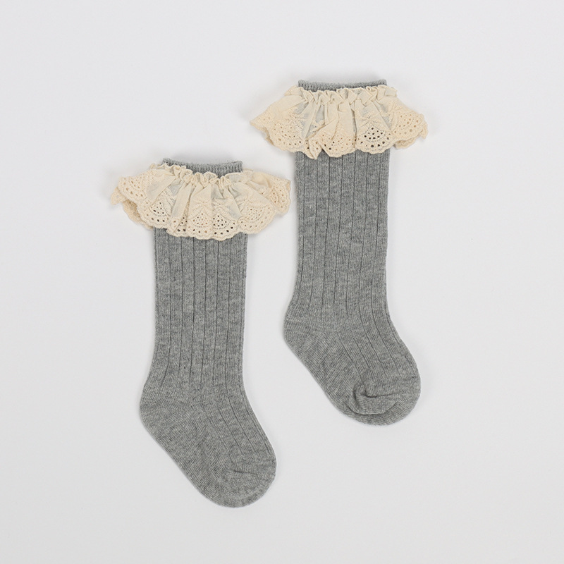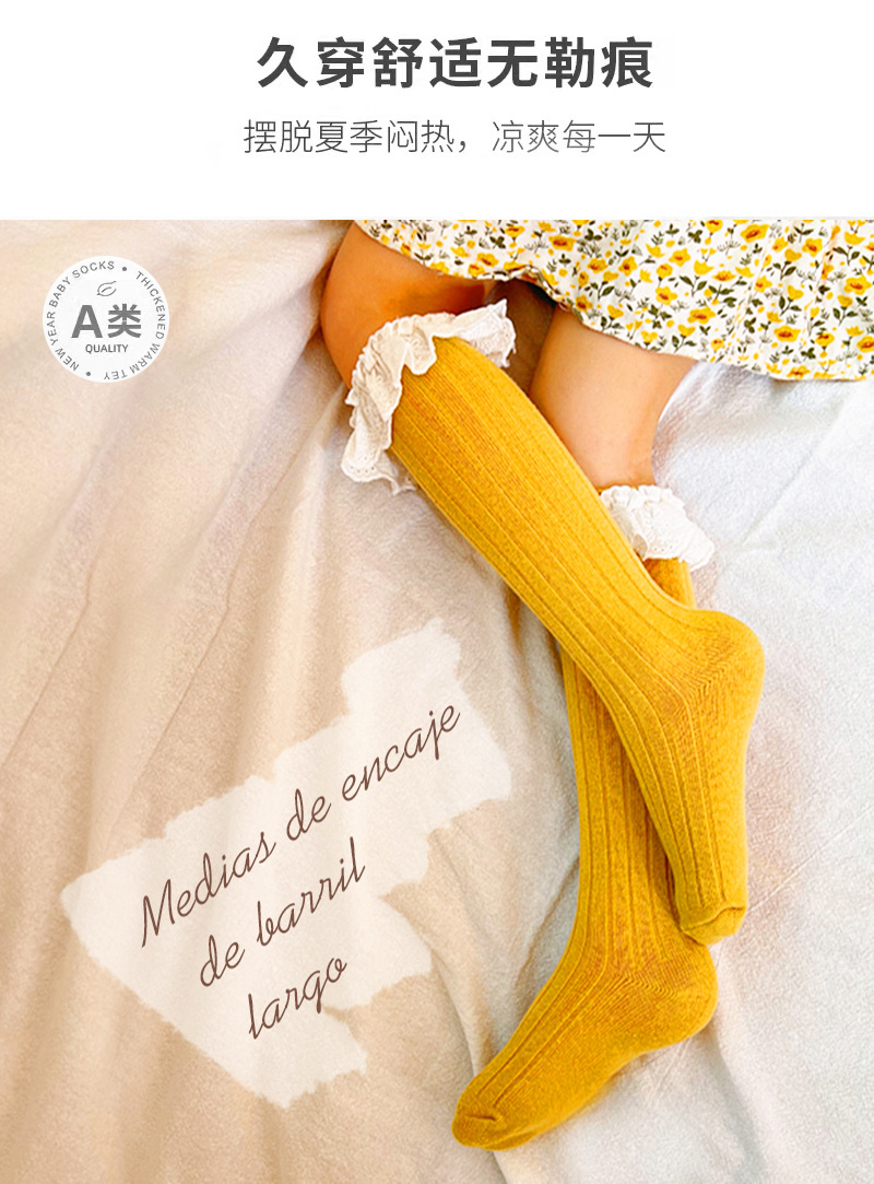 봄과 가을 긴 레이스 소녀 양말 얇은 높은 양말 공주 스타일 레이스 양말 여름 중반 송아지 아기면 양말