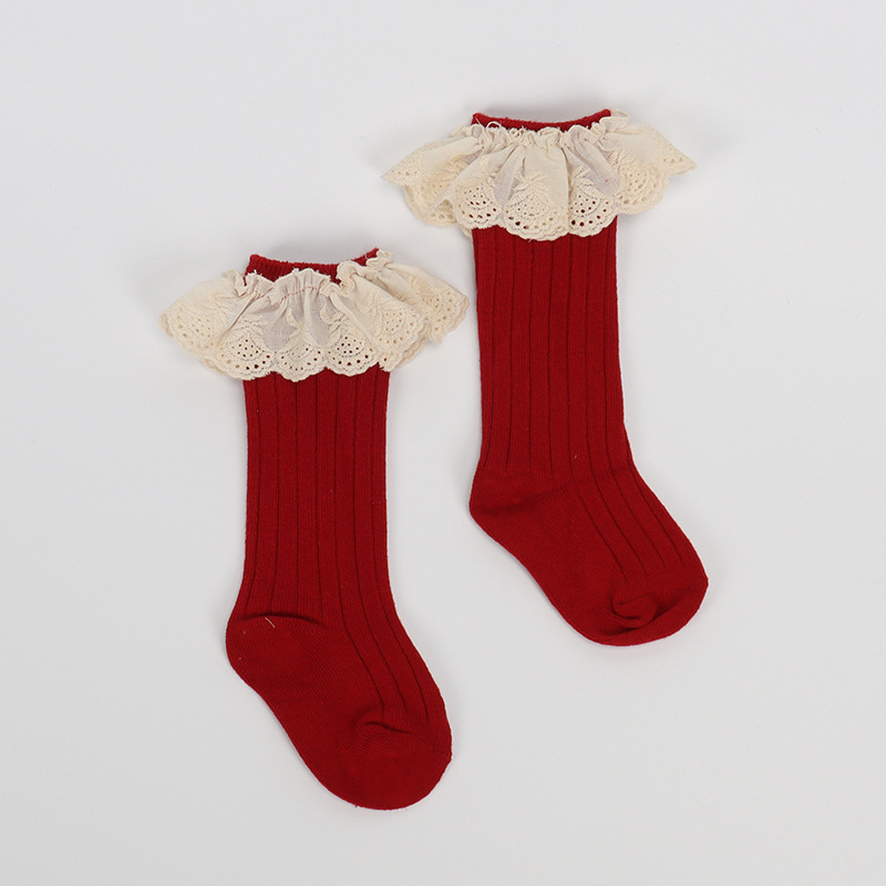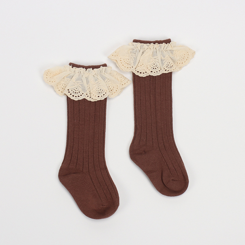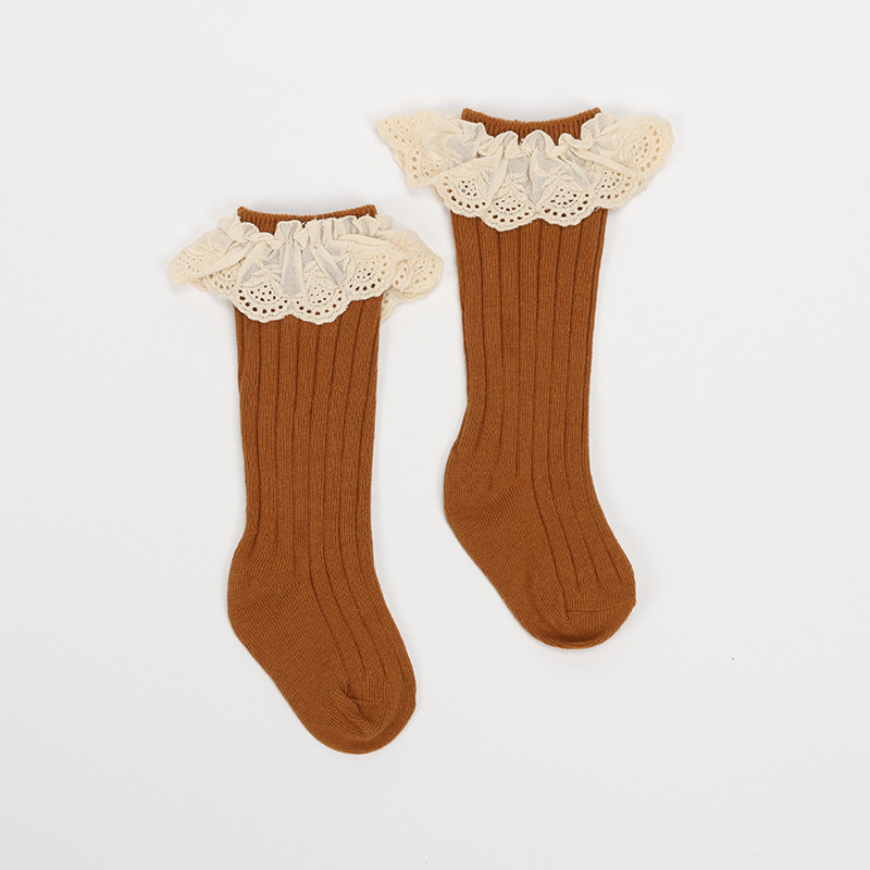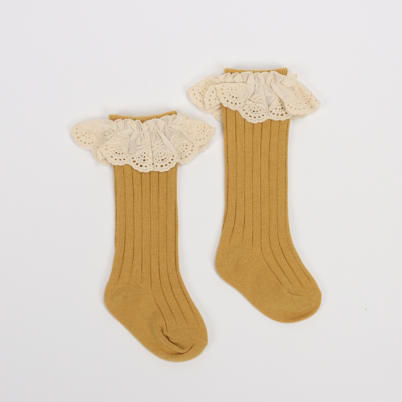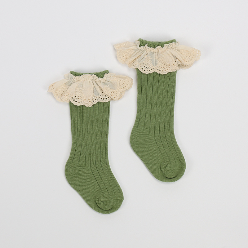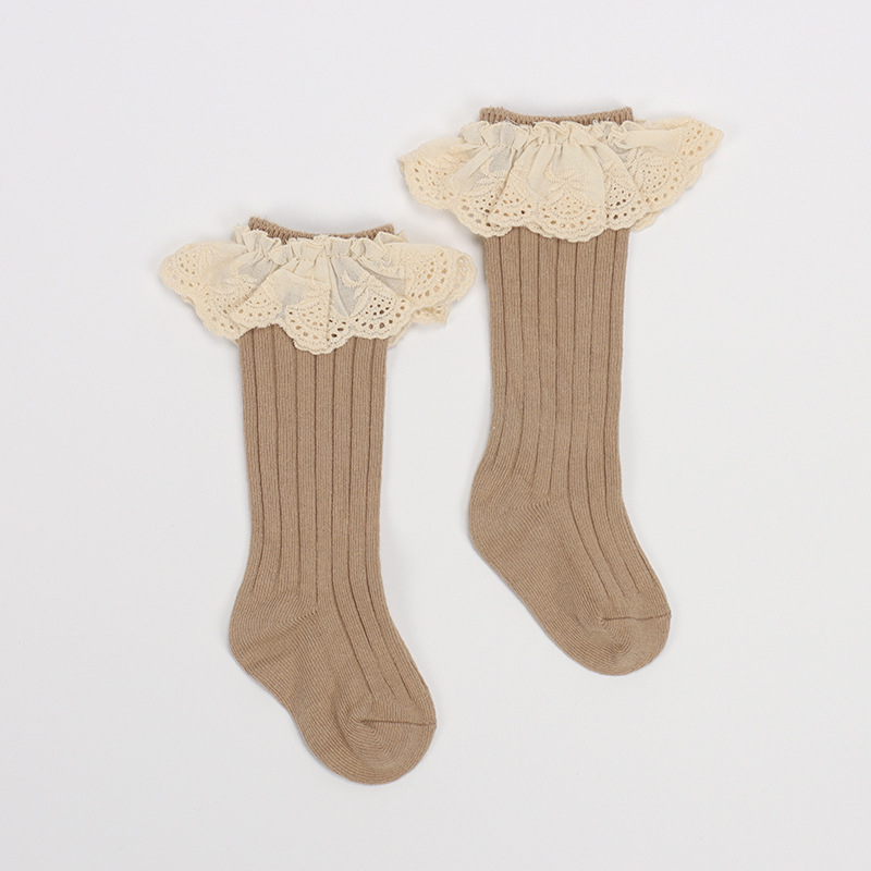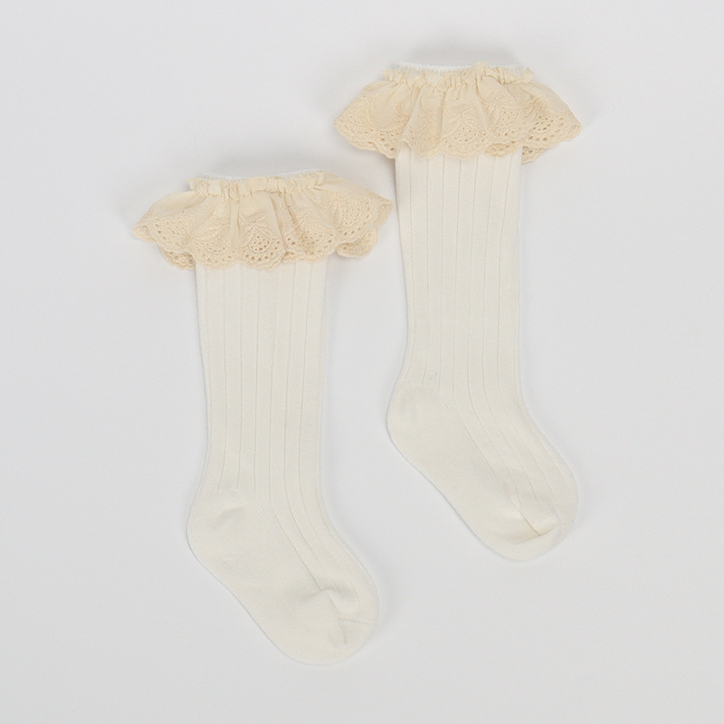 봄과 가을 긴 레이스 소녀 양말 얇은 높은 양말 공주 스타일 레이스 양말 여름 중반 송아지 아기면 양말