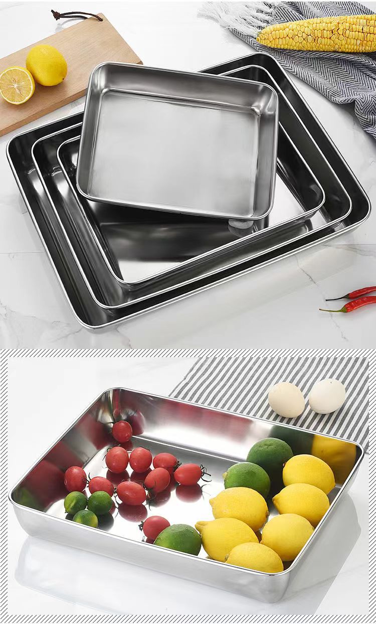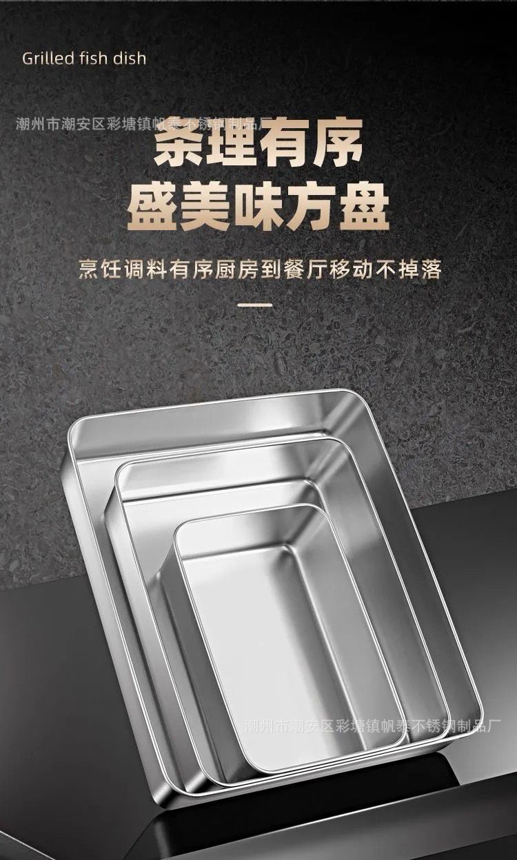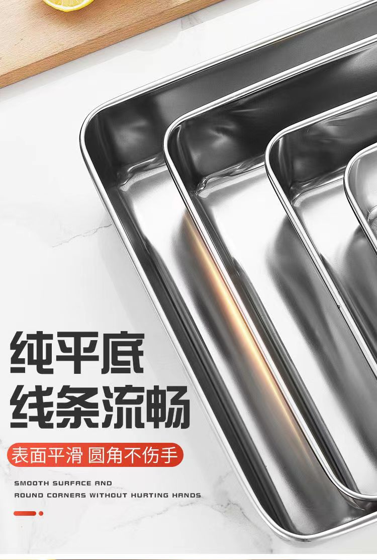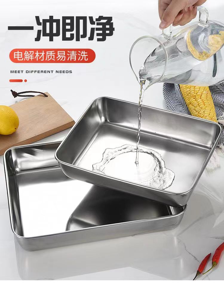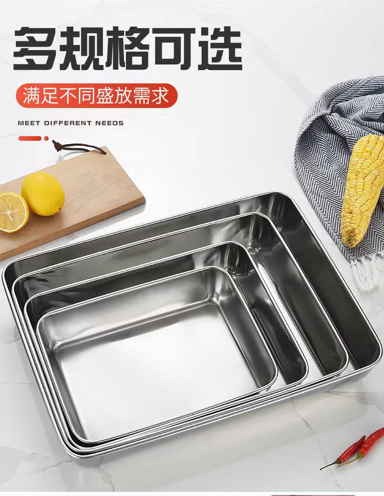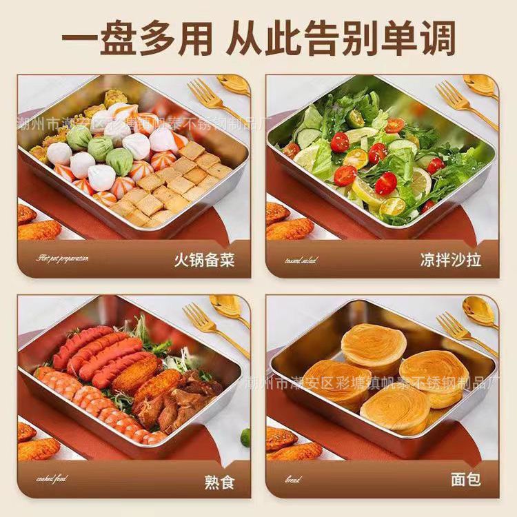 도매 두꺼운 스테인리스 수건 접시, 상업용 사각 접시, 평평한 식사 접시, 가정용 냉채 접시, 해외 직구 신선도 유지 접시스토어 가기