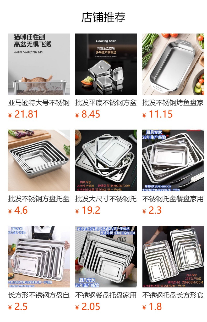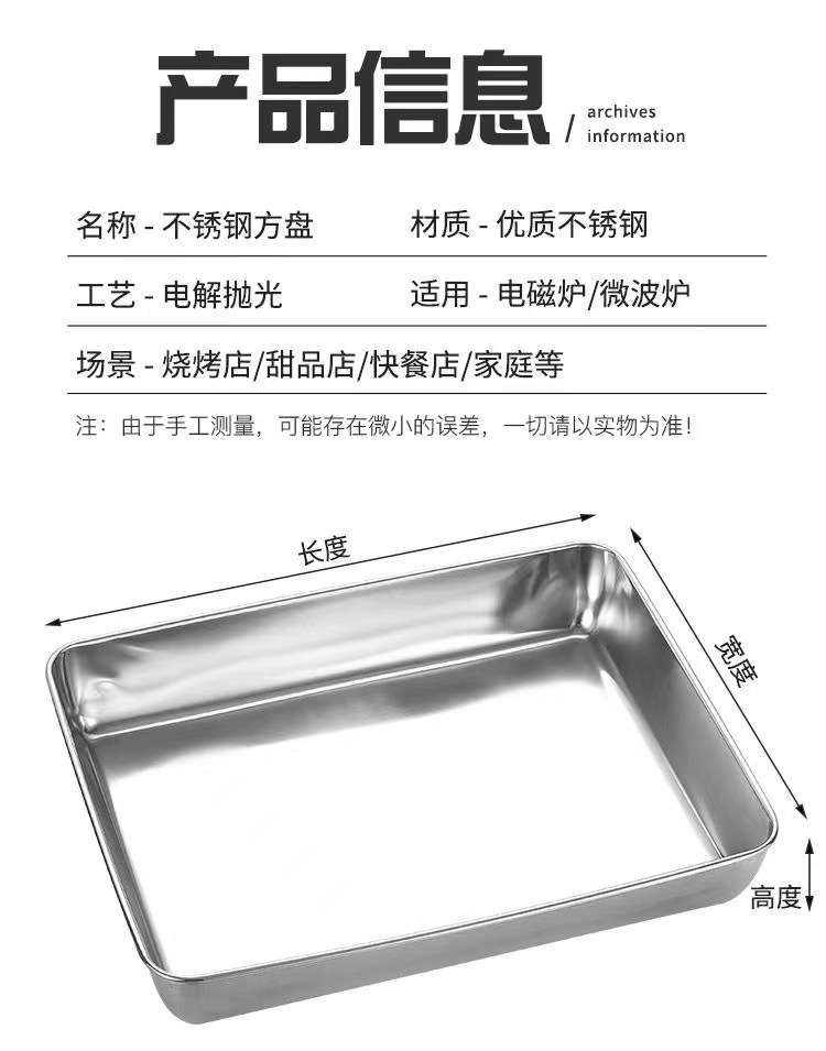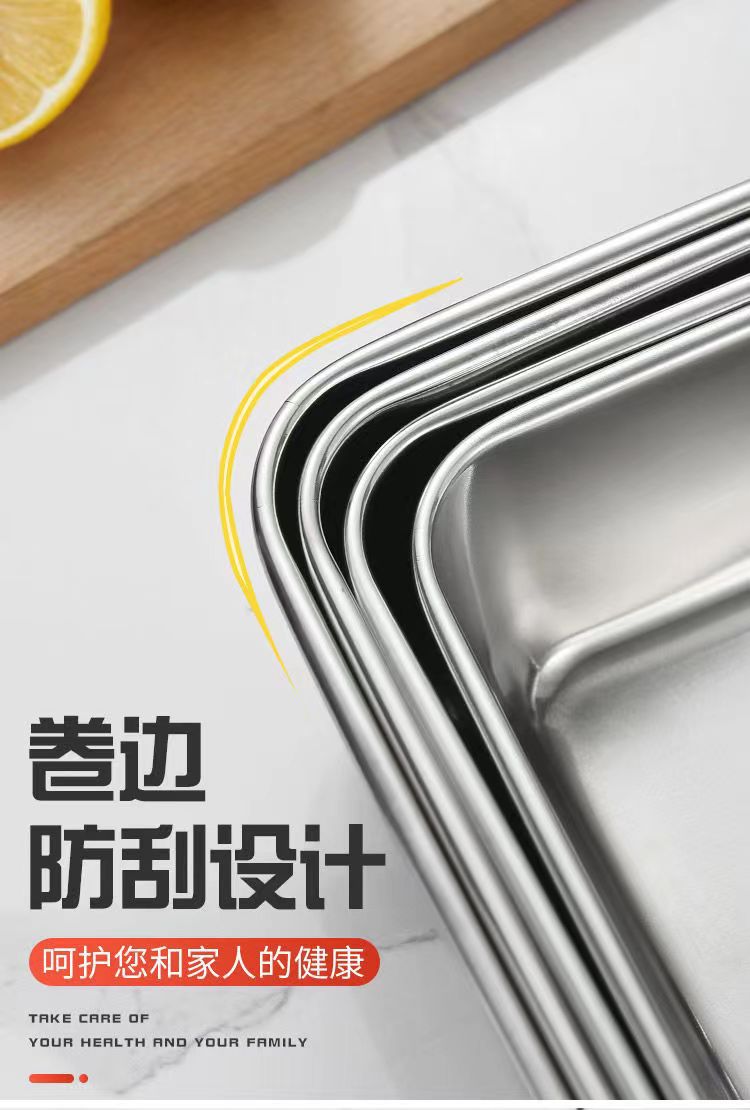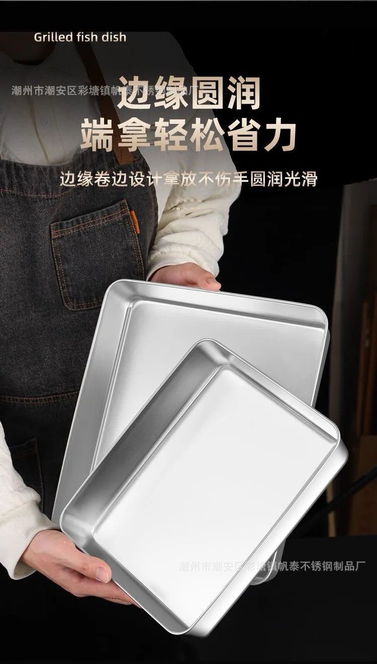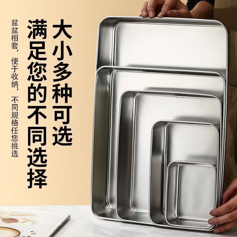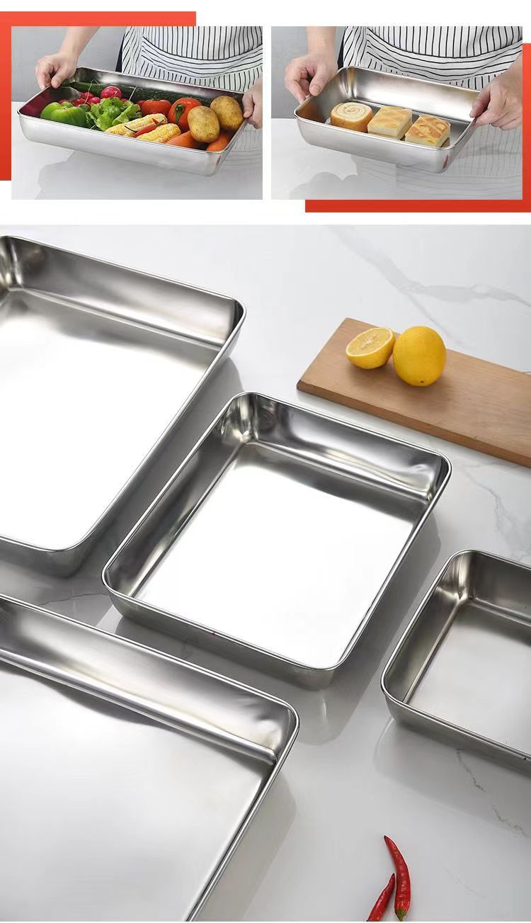 도매 두꺼운 스테인리스 수건 접시, 상업용 사각 접시, 평평한 식사 접시, 가정용 냉채 접시, 해외 직구 신선도 유지 접시스토어 가기