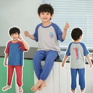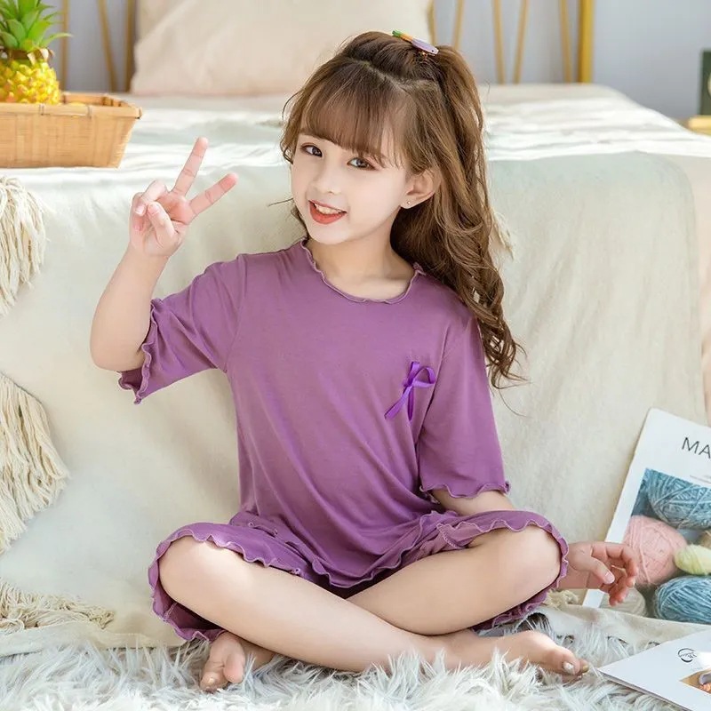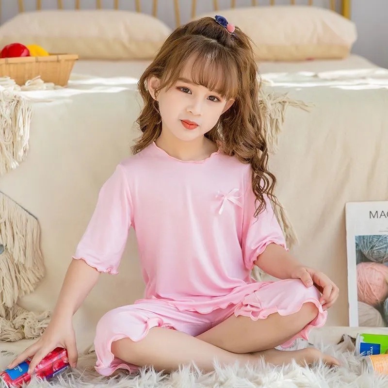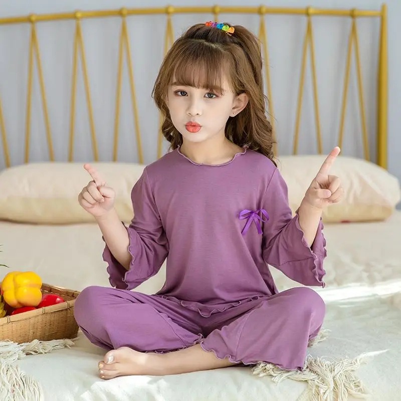 모달 어린이 봄과 가을 얇은 여아 가정복 아기의 여름 에어컨 옷 어린 소녀의 느슨한 잠옷 세트스토어 가기