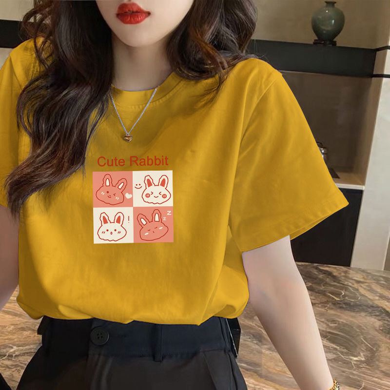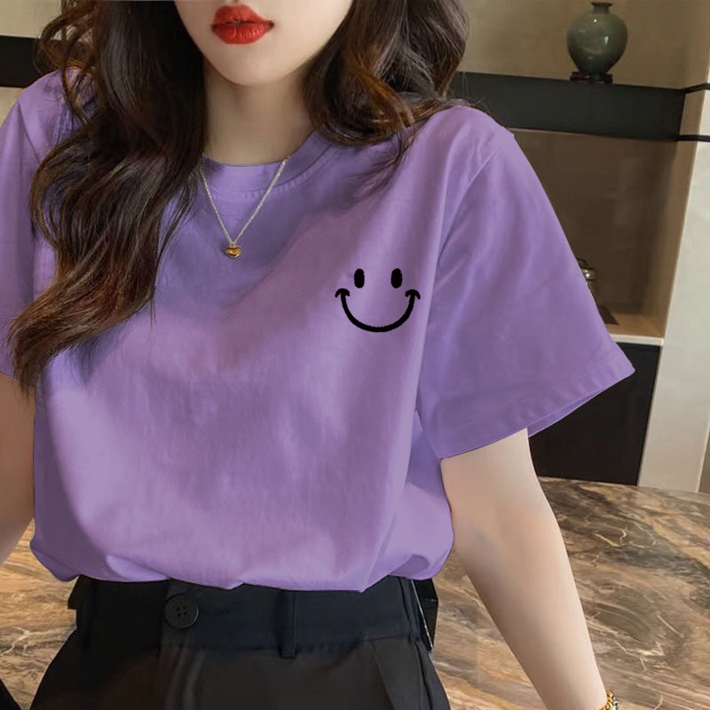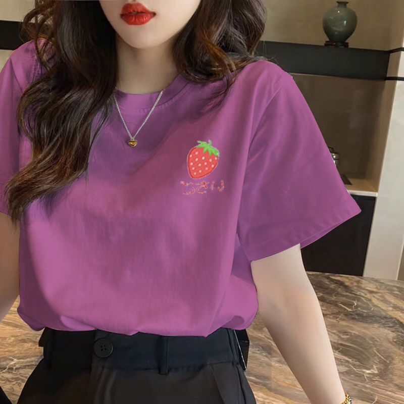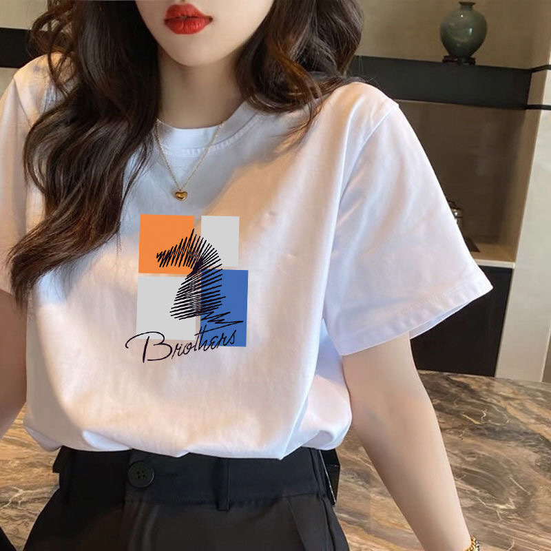 짧은 소매 여성의 여름 2023 새로운 티셔츠 한국식 다용도 플러스 사이즈 코튼 캐주얼 하프 슬리브 티셔츠 패션 인스토어 가기
