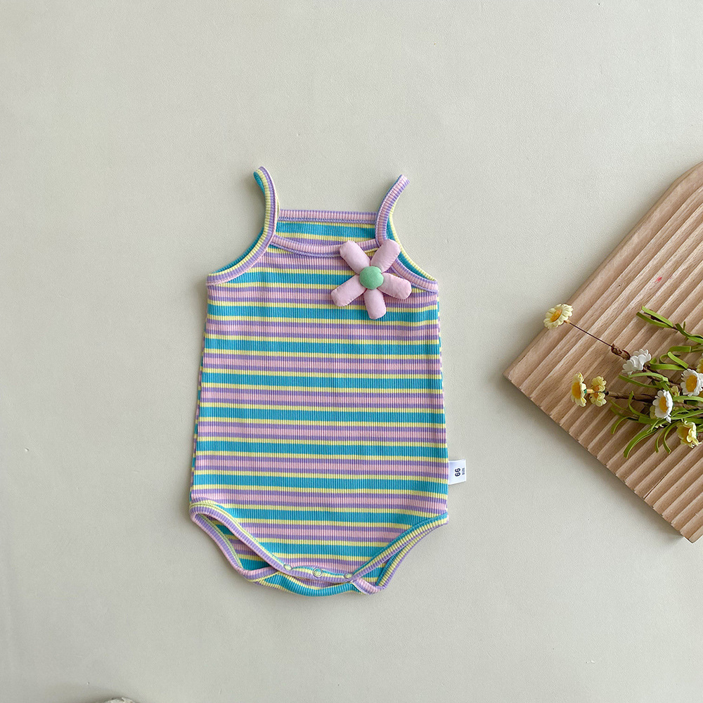 In 여름 슬링 하카이 아기 옷 얇은 조끼 여성과 아기 등산 의류 무지개 줄무늬 결합 가방 방귀 옷