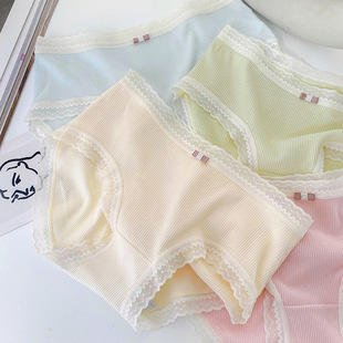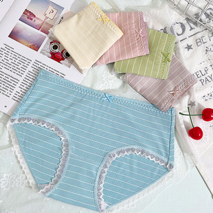 화려한 니트 면 자카드 소녀 팬티, 중간 허리 리본, 순면 가랑이, 레이스 스트라이프 여성 삼각 팬티스토어 가기