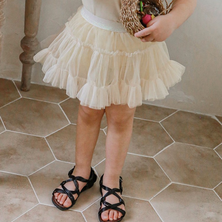 2026 여름 딸기 샌즈 걸즈 여아용 스타일리쉬한 신축성 허리 주름 플리츠 퍼프 거즈 스커트 팬츠 스커트 재고 있음