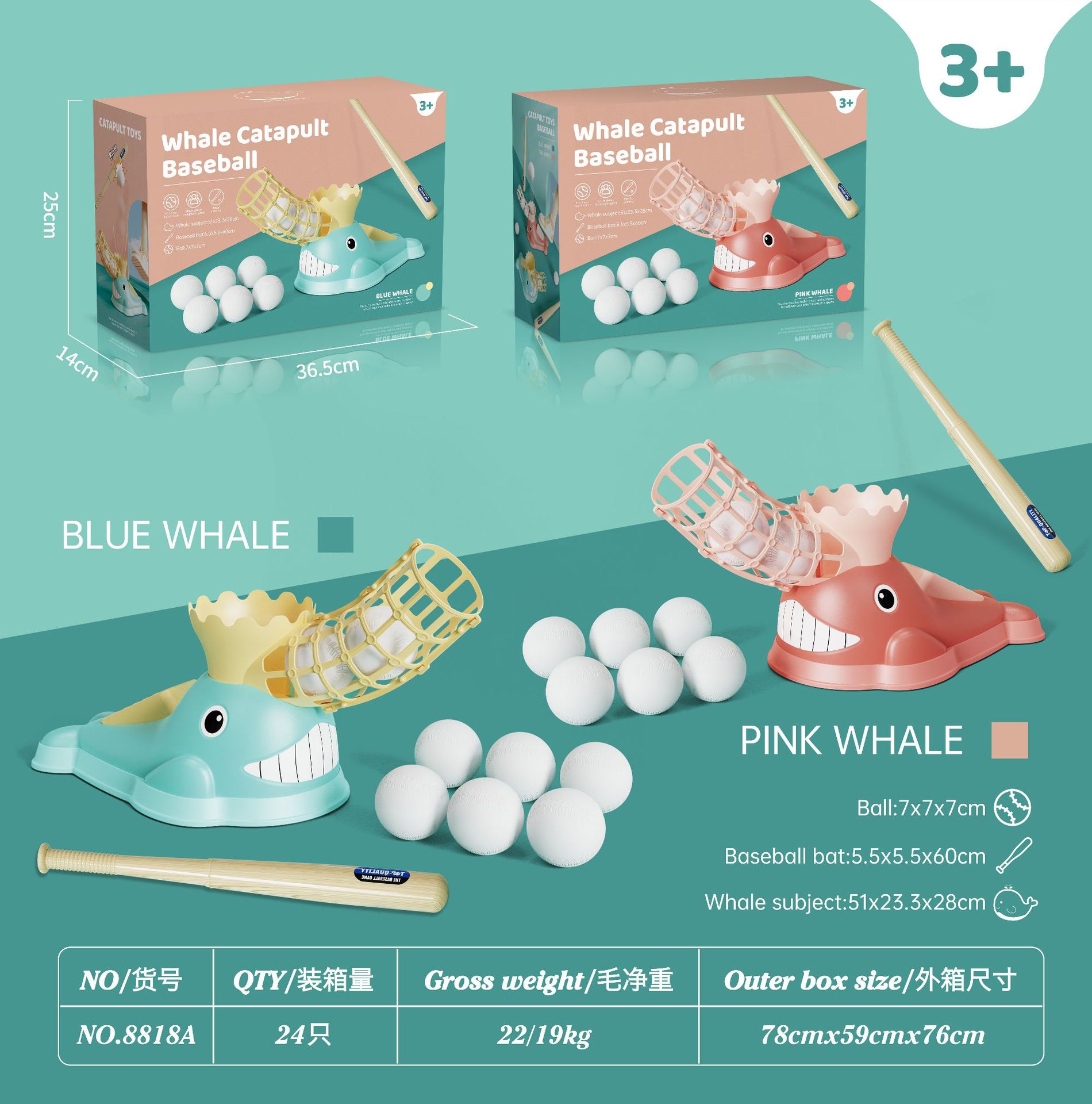 • 마카롱 고래 블루 박스 [3 야구 1 배트]]