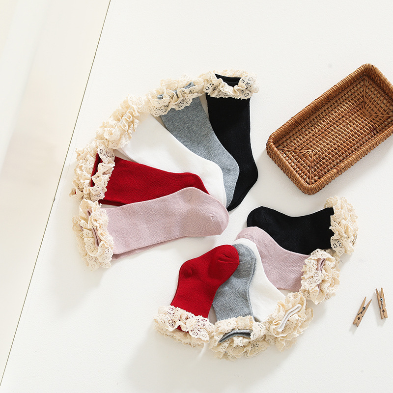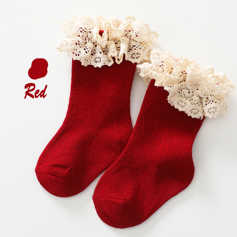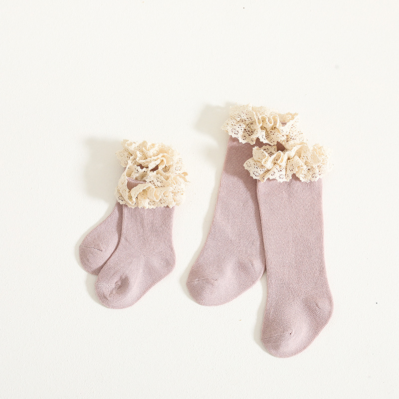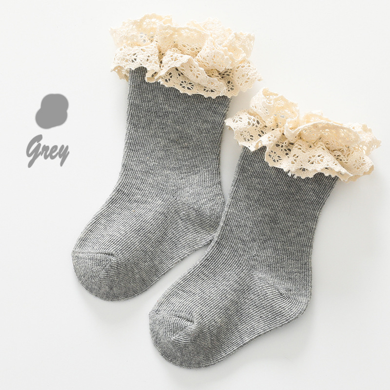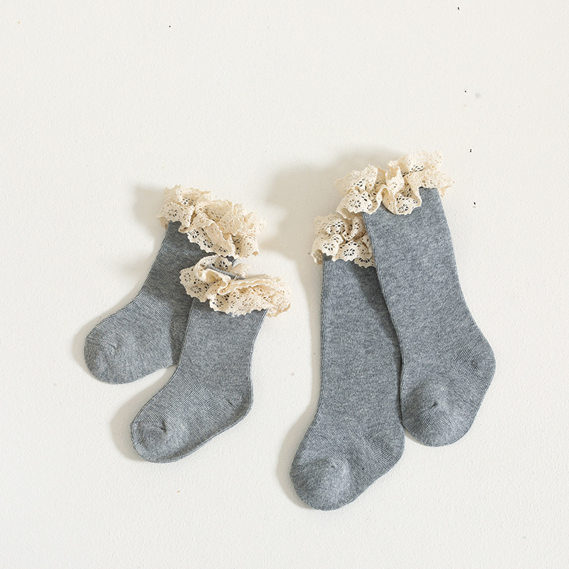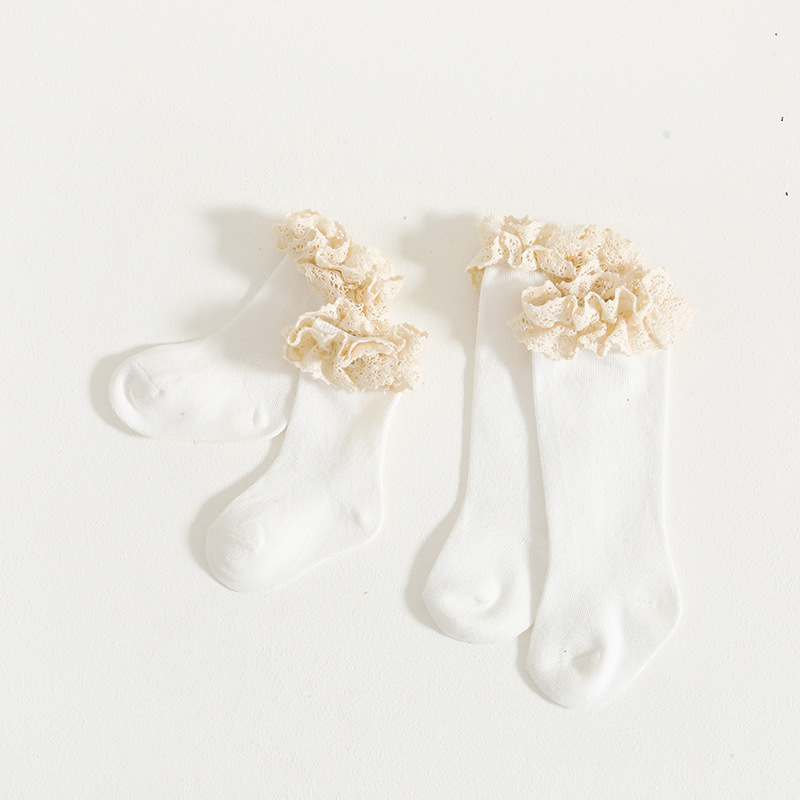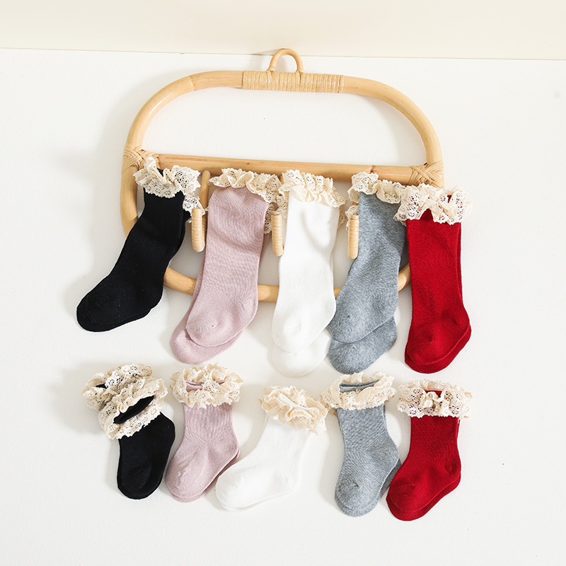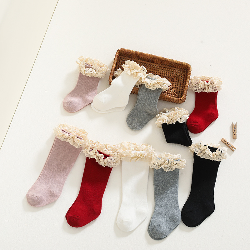 2025 새로운 봄, 가을 스타일 레이스 중간 길이 아기 면 양말 아기 소녀 공주 스타일 통 양말 통기성