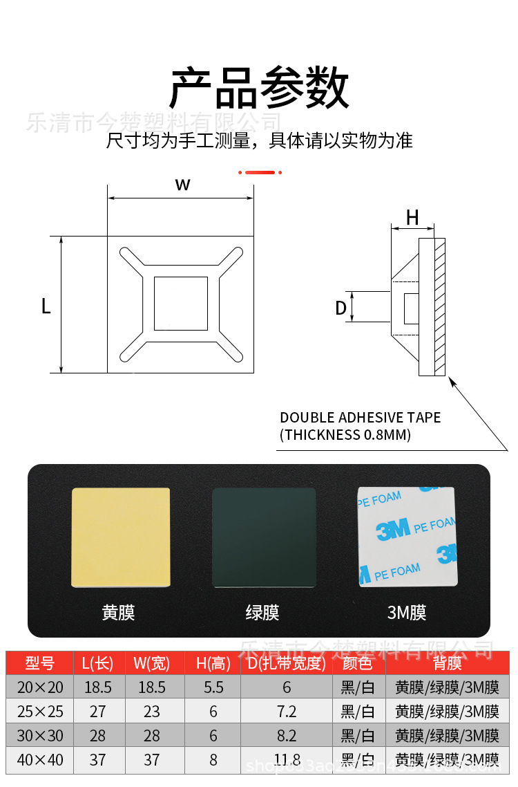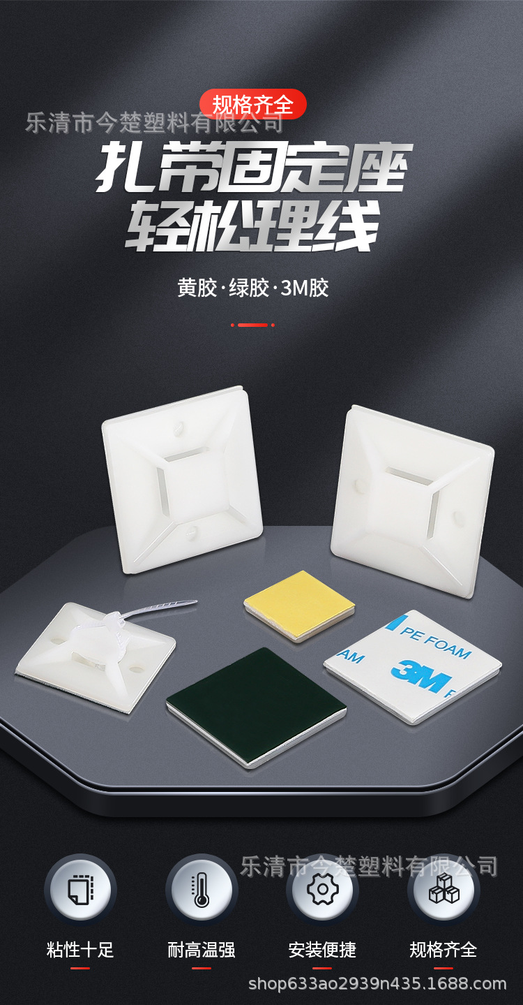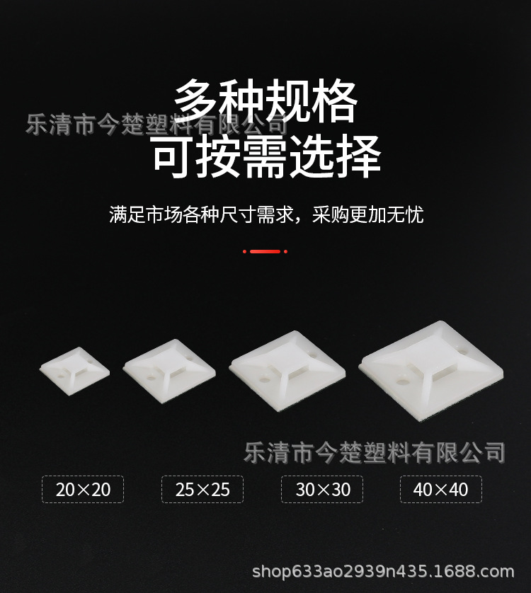 자체 접착 접착 케이블 타이 베이스 고정 케이블 주최자 펀치 프리 20*20 25*25 30*30 40*40