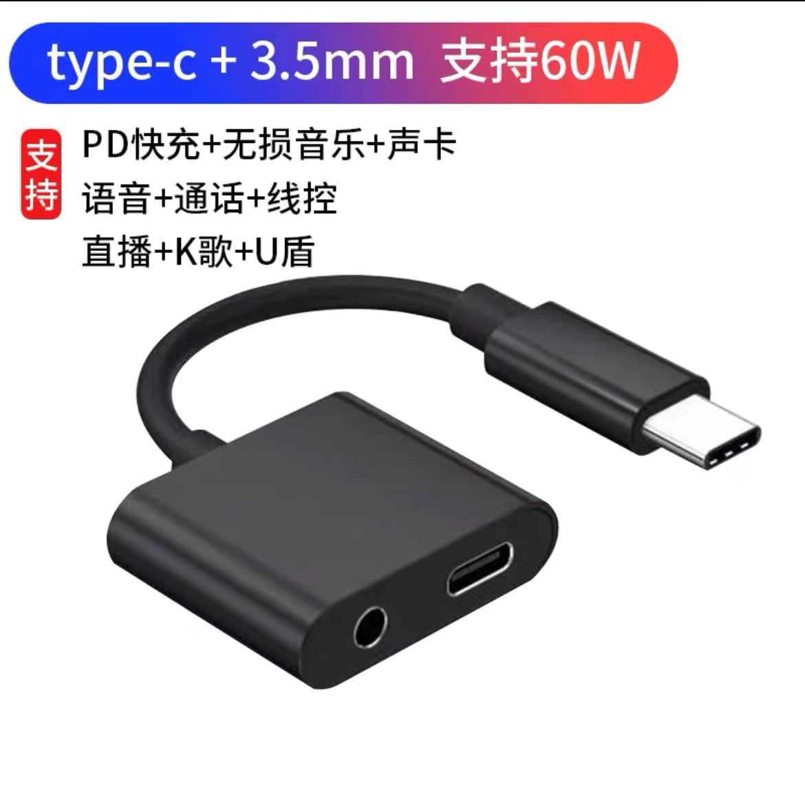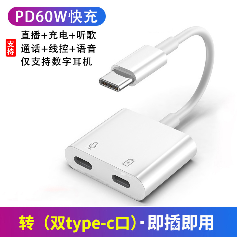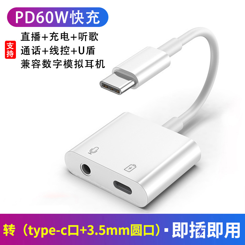 Type-c ~ 3.5mm 디지털 오디오 어댑터 2-in -1 PD60W 통화 청취 충전 오디오 변환기