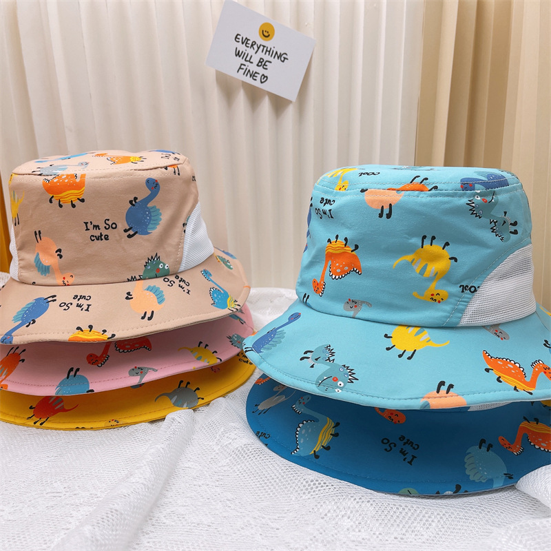 새로운 어린이 선 스크린 캡 야외 여행 어린이 그물 모자 만화 아기 어부 모자 여름 통기성 모자 어린이스토어 가기