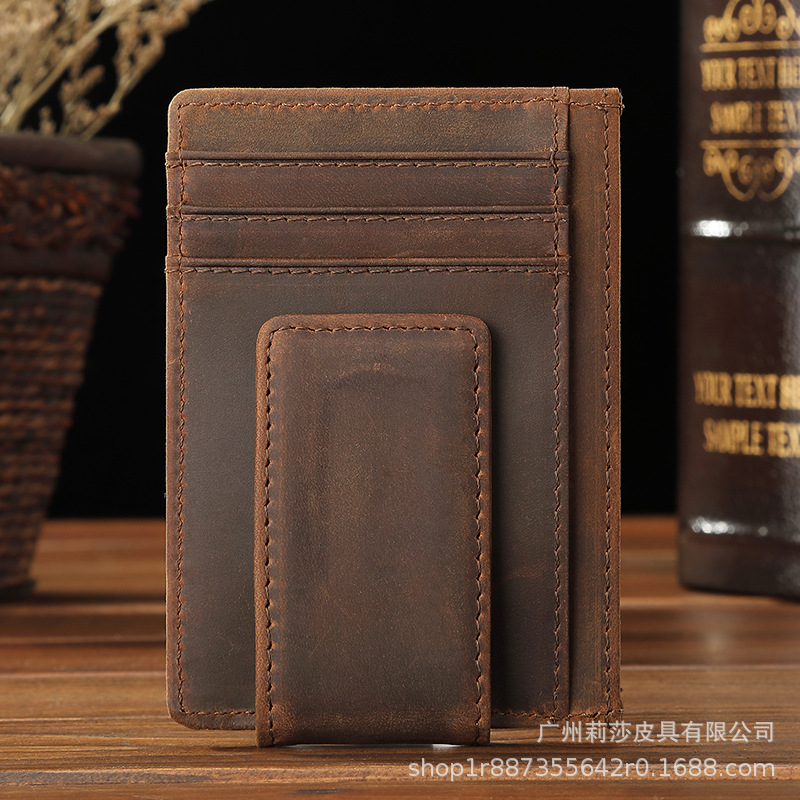 남성용 지갑, 크레이지 호스 가죽, 항자성, 멀티 카드 슬롯 카드 홀더, 신상 달러 클립, 천연 가죽 동전 지갑, 공장 도매, 고급스러운 질감스토어 가기