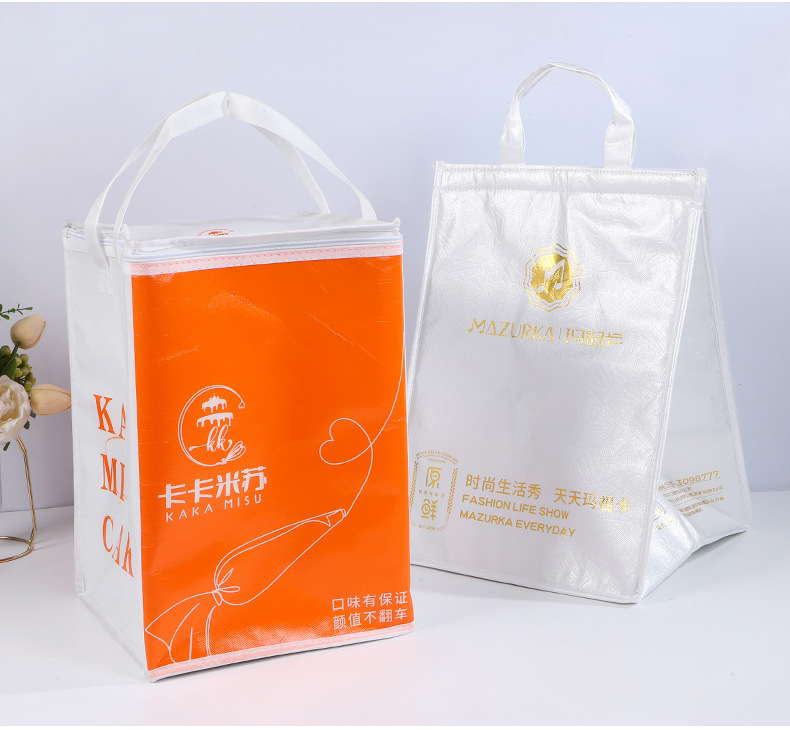 케이크 단열 백 부직포 테이크 아웃 밀크 티 휴대용 바베큐 단열 백 신선한 냉장 토트 백 배달 알루미늄 호일