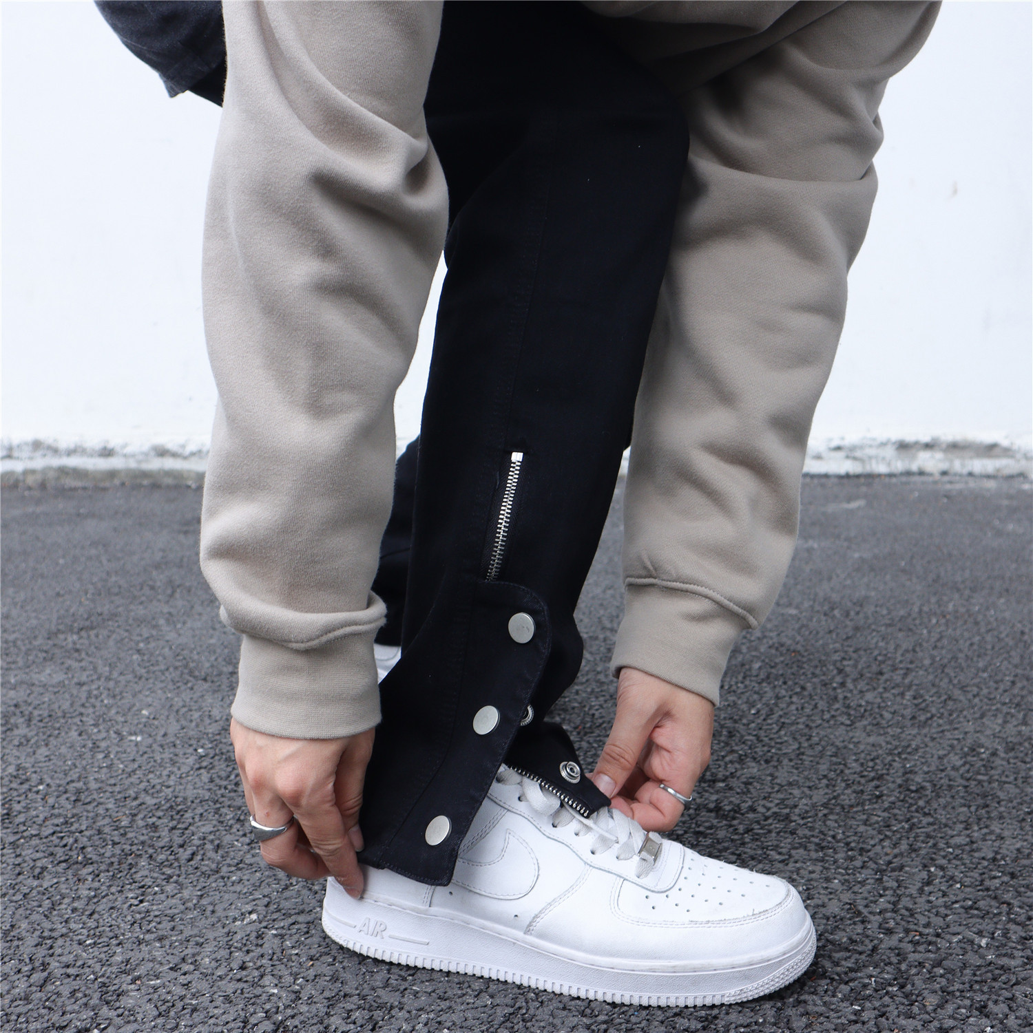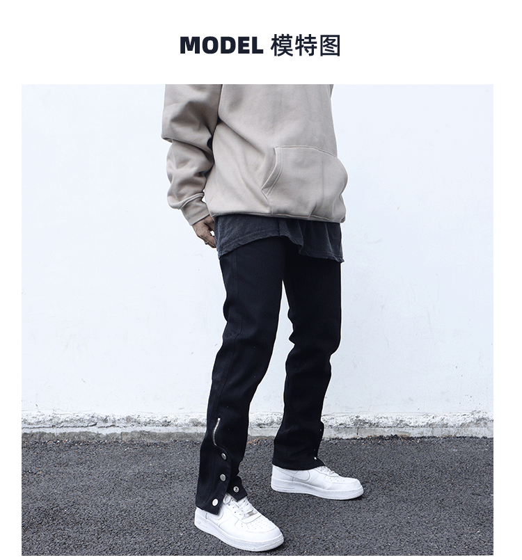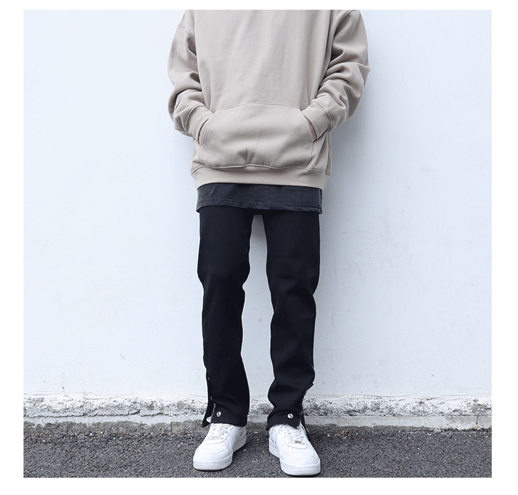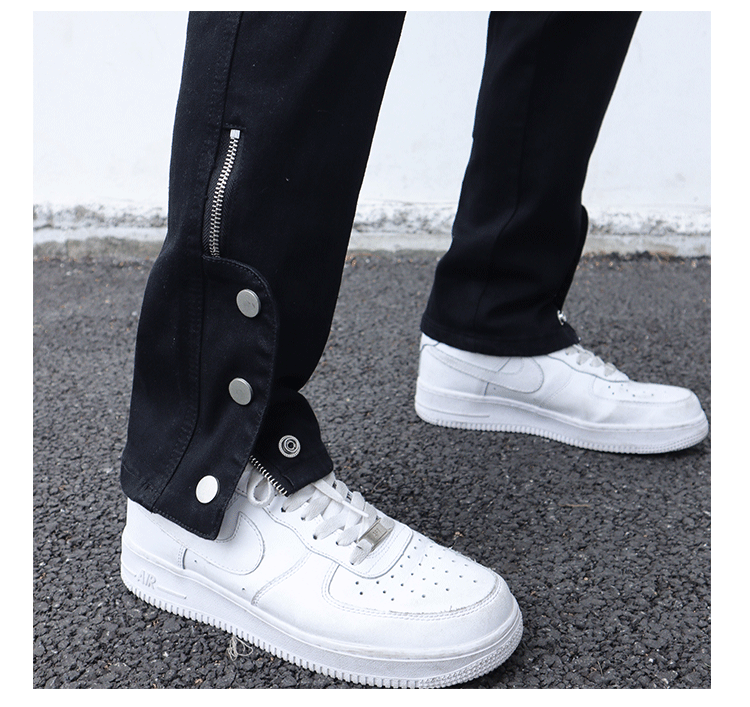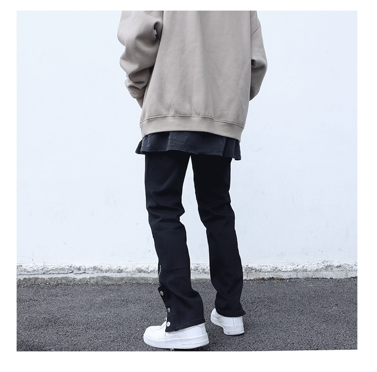 하이 스트리트 바이브 스타일 블랙 슬림핏 청바지 남성용 트렌디 브랜드 팬츠 사이드 슬릿 지퍼 브레스트 팬츠 버튼 팬츠스토어 가기