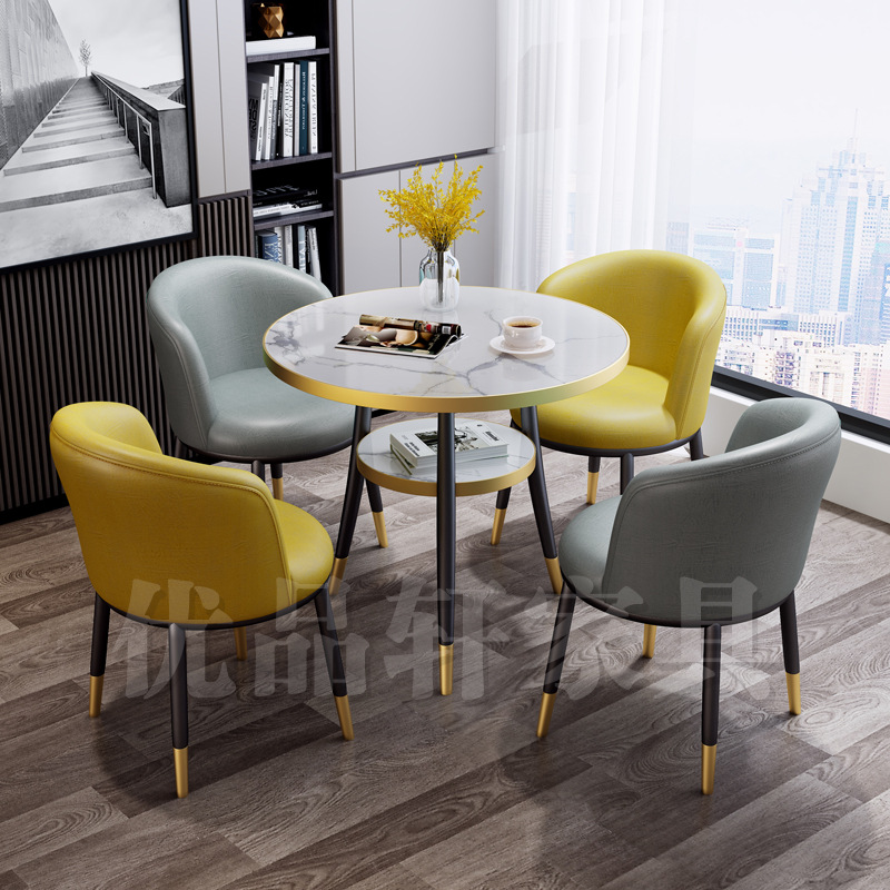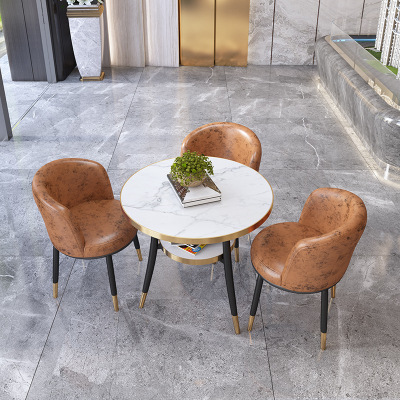 가벼운 럭셔리 발코니 작은 라운드 테이블 간단한 판매 사무실 회의 비즈니스 협상 레저 사무실 리셉션 협상 테이블 및 의자 조합스토어 가기