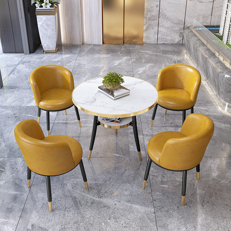 • 노란 가죽 의자 1 테이블 4 의자 80cm