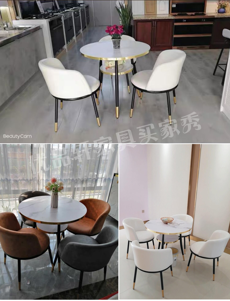• 살구색 베이지 가죽 의자 1 테이블 3 의자 80cm