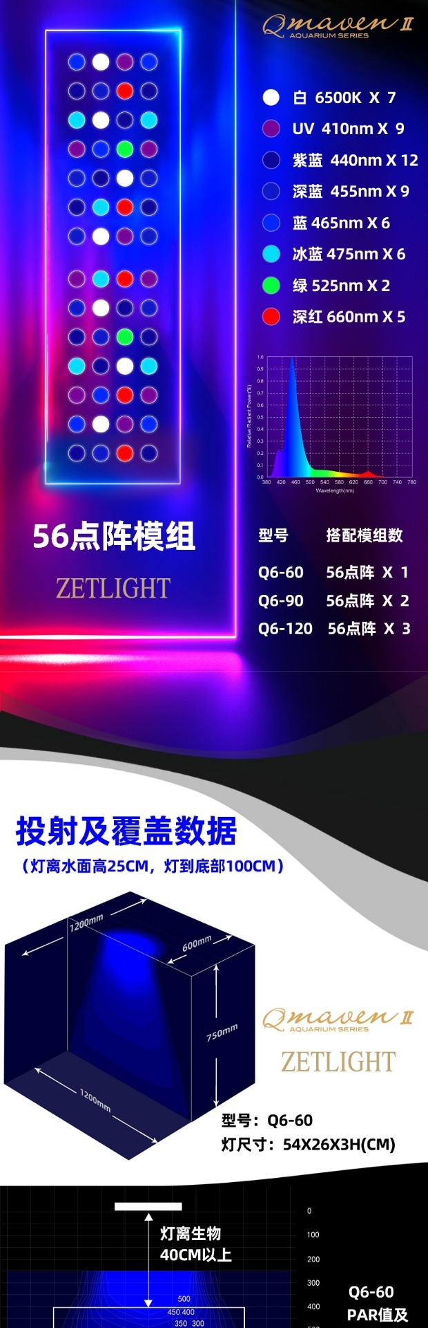 빛 축적 Q6 바다 빛 6600 산호 빛 led 빛 LPS 물고기 탱크 sps 일출 일몰 스마트 바다 탱크 APP 제어스토어 가기