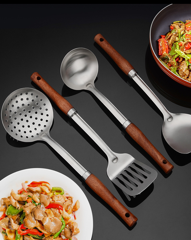 304 스테인레스 나무 손잡이 주방용품 세트 가정용 주걱 전골 스푼 풀세트 볶음삽 주방 조리도구스토어 가기