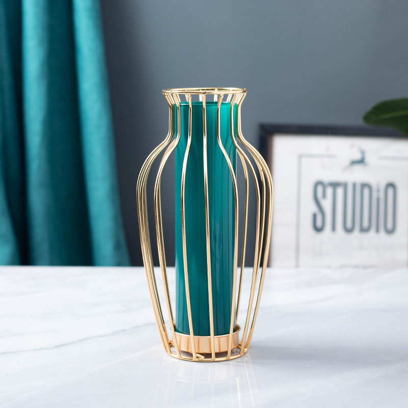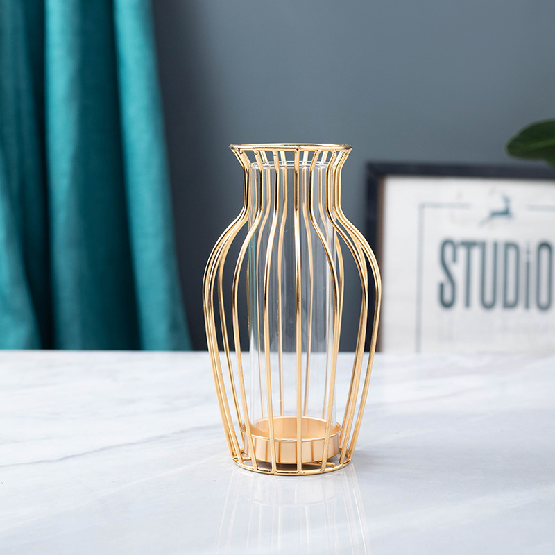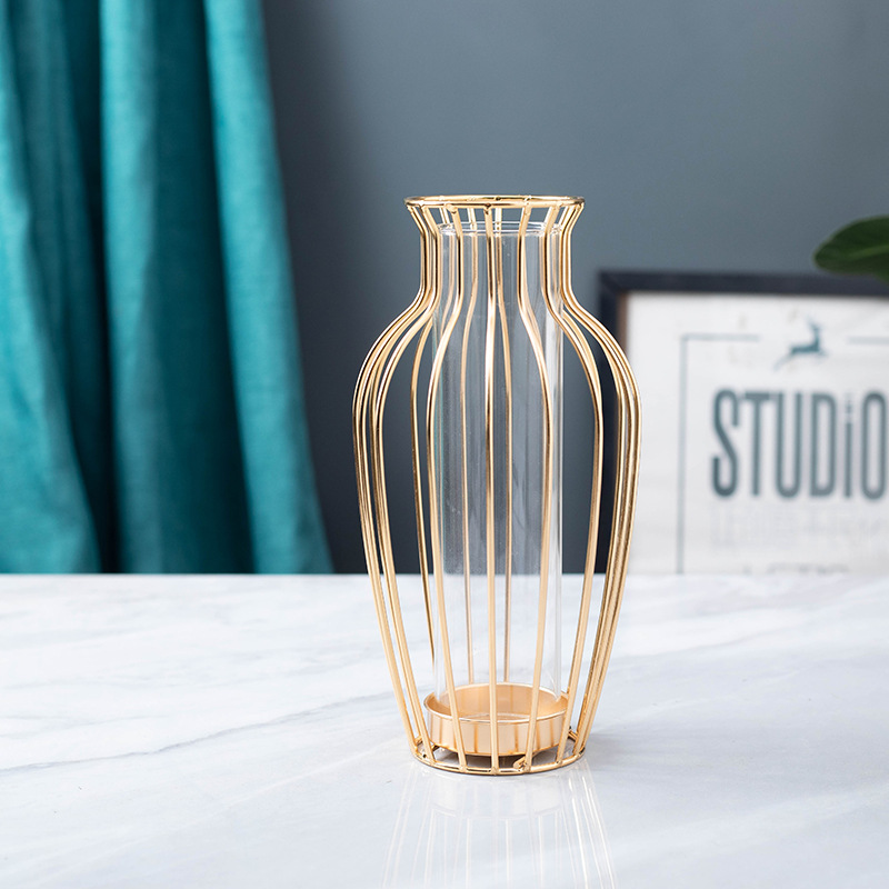 국경을 넘어 인기 있는 창의적인 철제 유리 꽃병 장식품, 식탁 거실용 드라이플라워 수경재배, 현대적인 홈데코스토어 가기