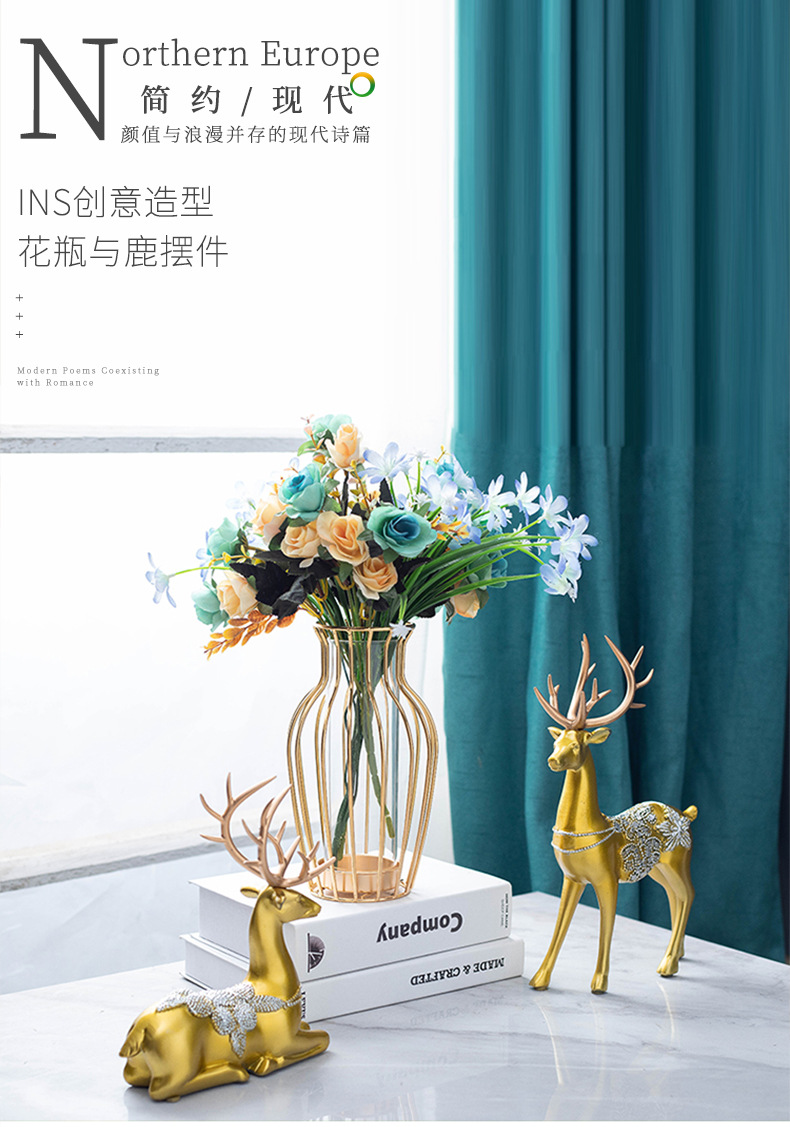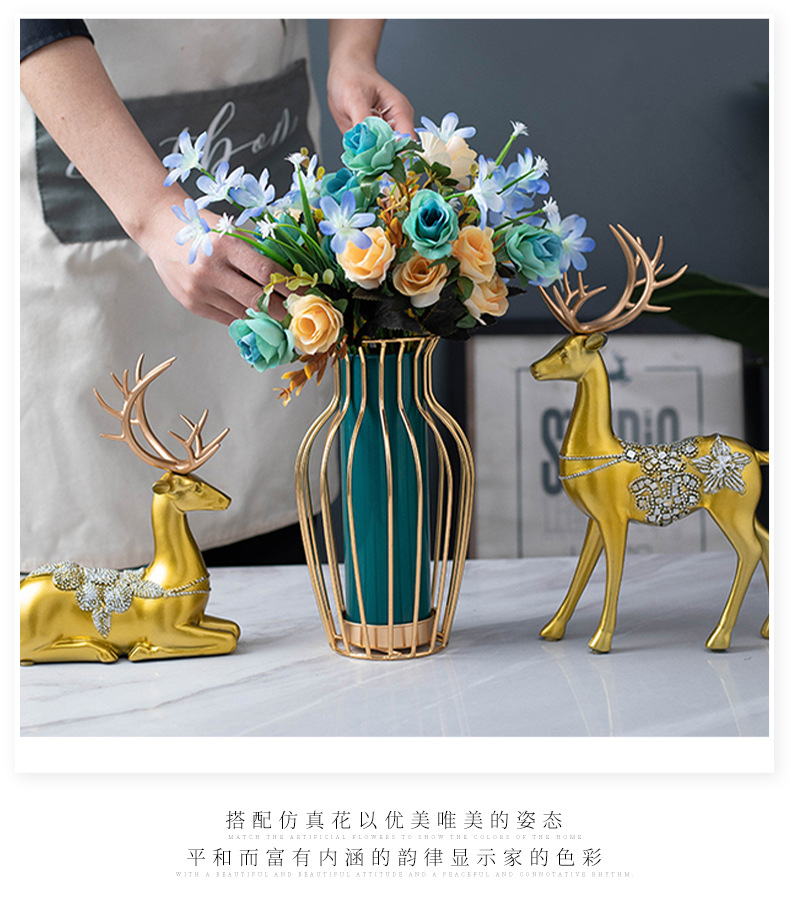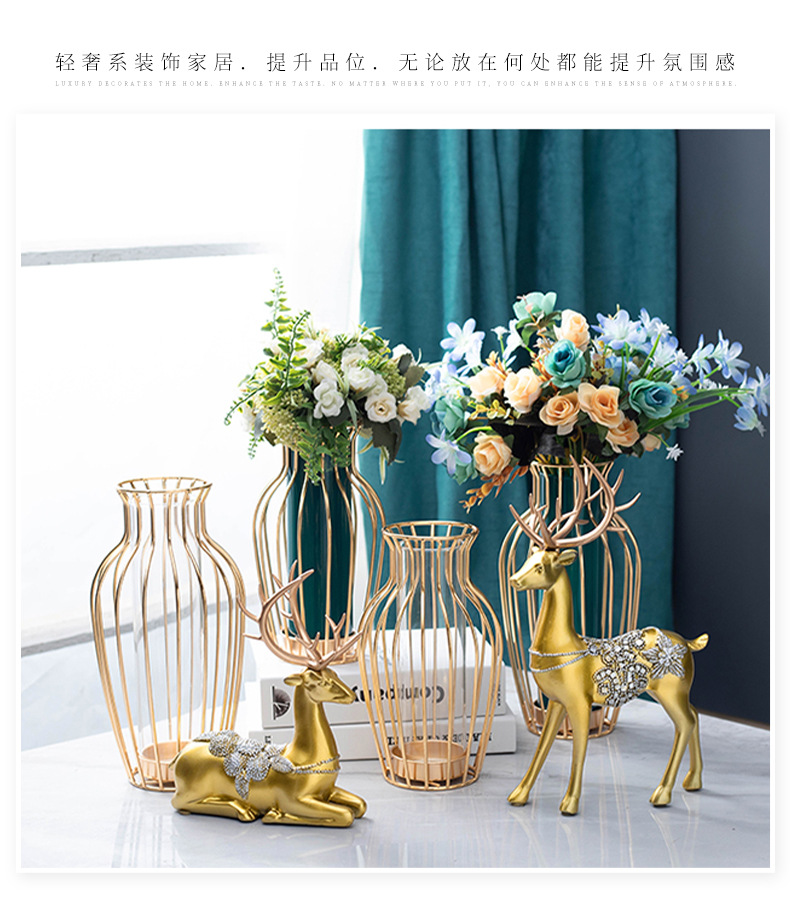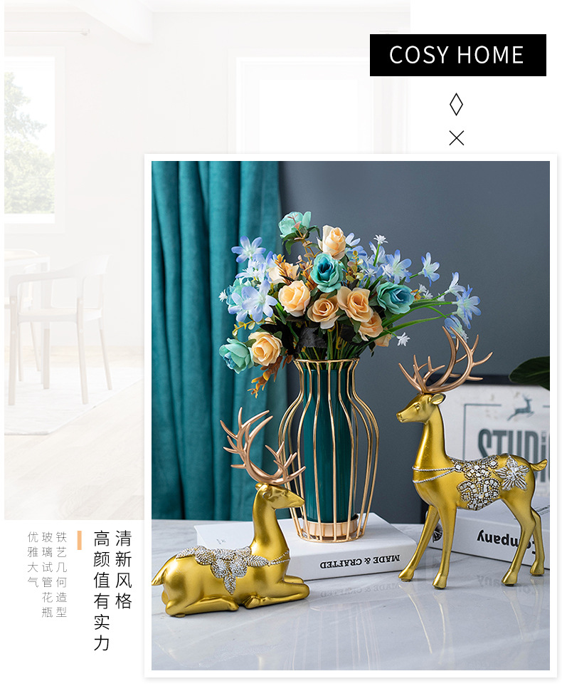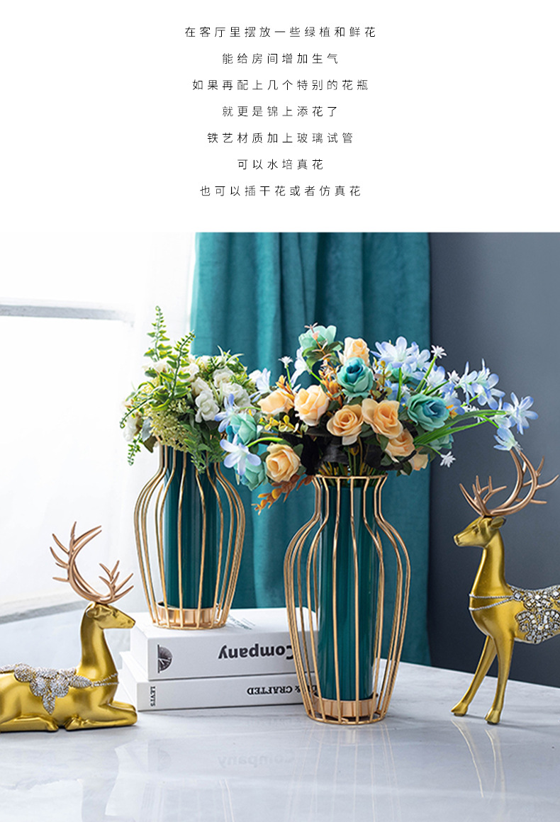 국경을 넘어 인기 있는 창의적인 철제 유리 꽃병 장식품, 식탁 거실용 드라이플라워 수경재배, 현대적인 홈데코