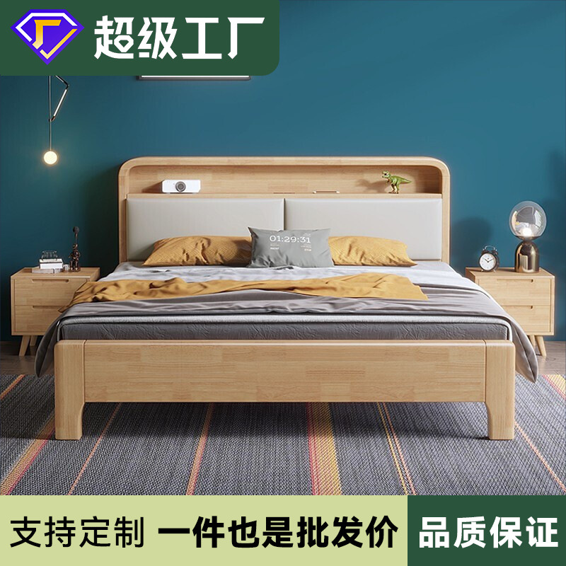 북유럽 단단한 나무 침대 1.8 야간 조명이있는 부드러운 더블 침대 1.5 m1.35 모던 심플 소형 아파트 1.2 수납 침대스토어 가기