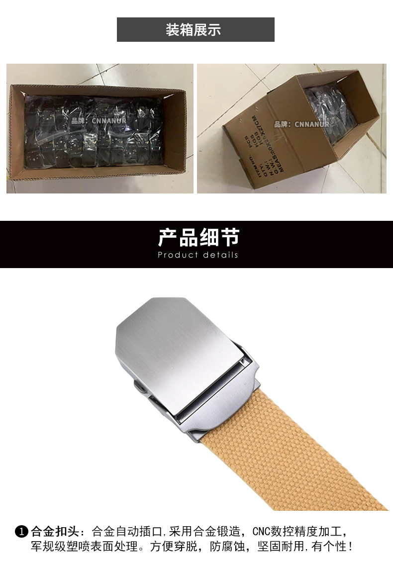 크로스 국경 캔버스 전술 벨트 합금 자동 버클 캔버스 벨트 남자의 캐주얼 폴리에스터 면 벨트 재고스토어 가기