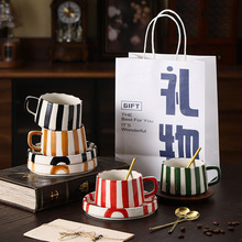 日式复古精致下午茶拉花条纹咖啡杯碟陶瓷组合办公室牛奶早餐杯子