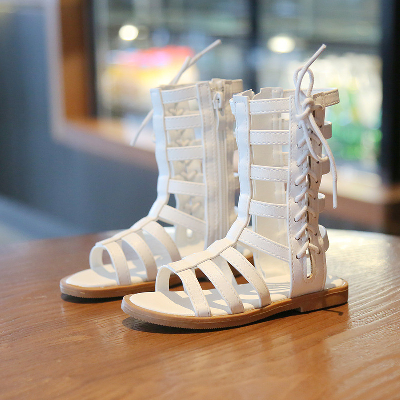한국 스타일 사이드 지퍼 여아 로마 샌들 중공 통기성 짧은 부츠 여름 새로운 어린이 하이탑 샌들