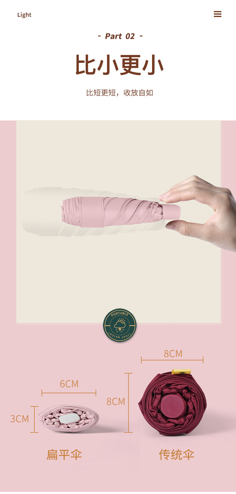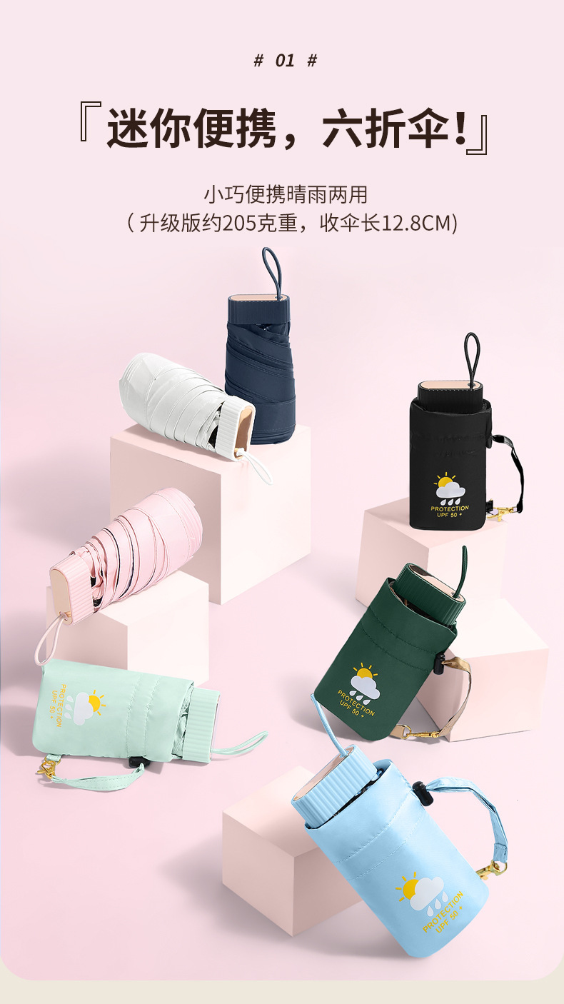 12.8cm 초경량 미니 태양 우산, 자외선 차단 및 자외선 차단 우산, 소형 휴대용 접이식 우산, 비가 오나 눈이 오나 겸용스토어 가기