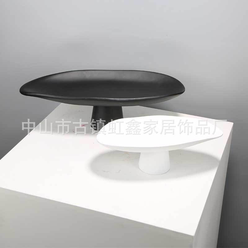 가벼운 럭셔리 미니멀리스트 흑백 수지 높은 발 과일 접시 공예 간단한 북유럽 부드러운 장식 판매 모델 룸 보석 장식품