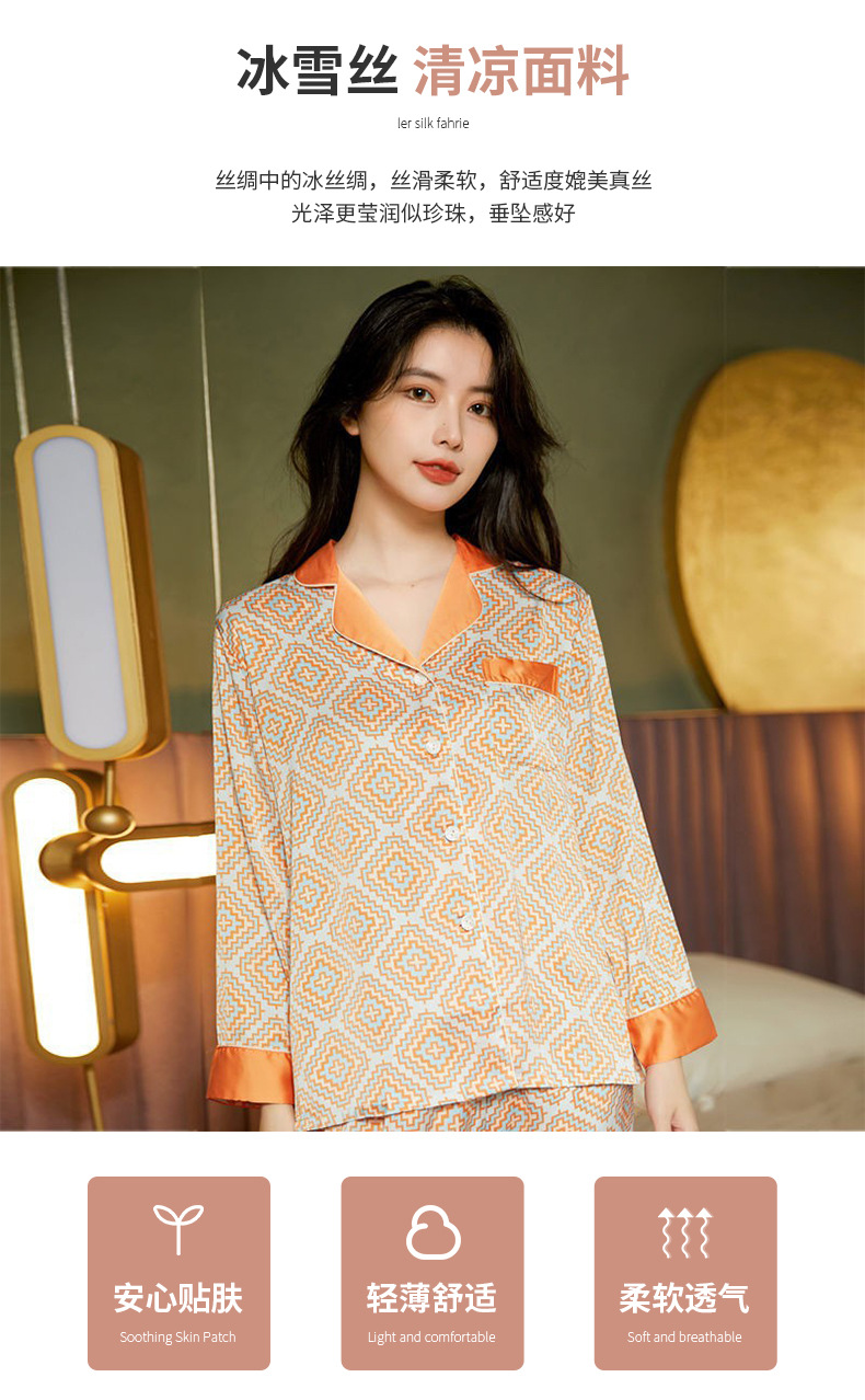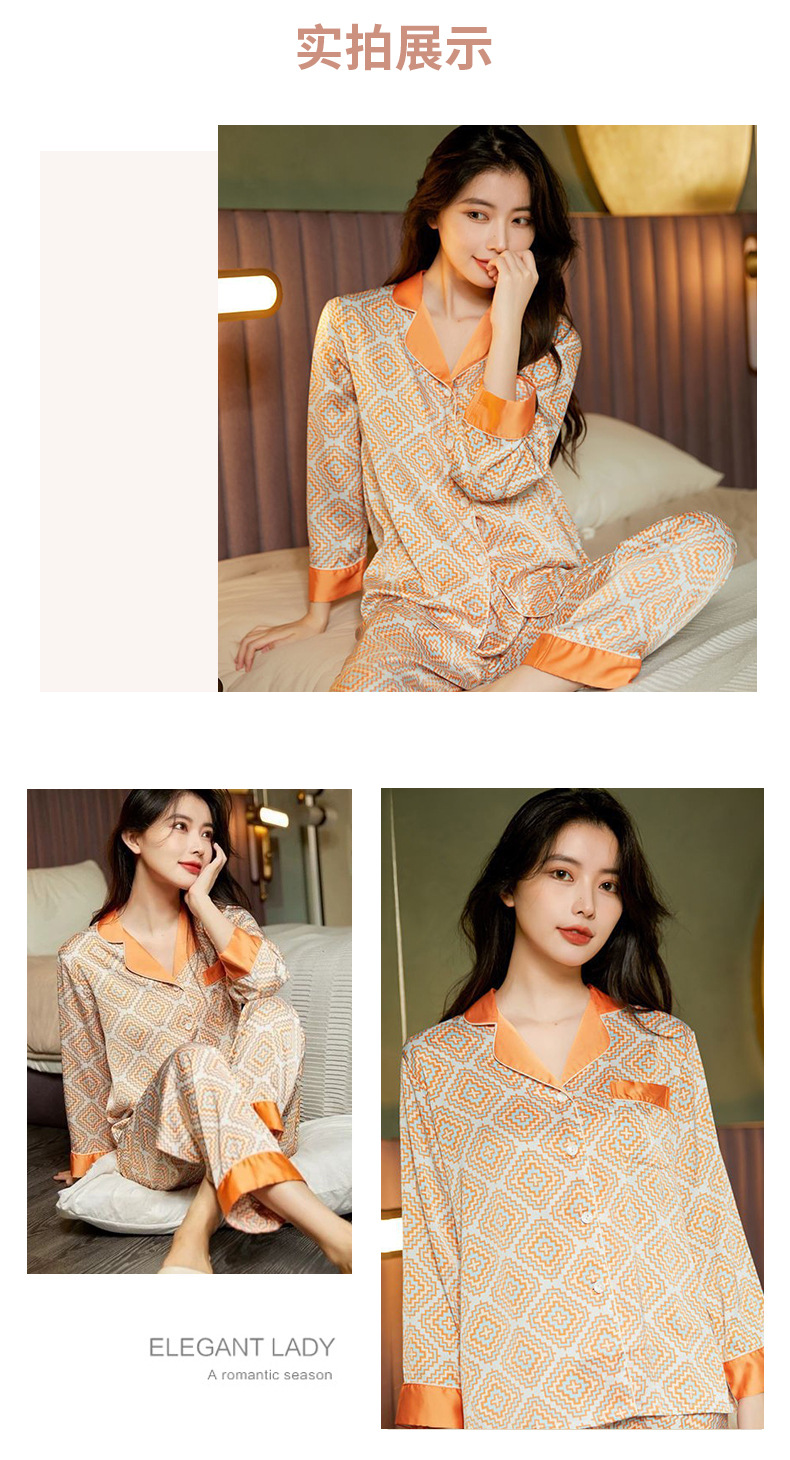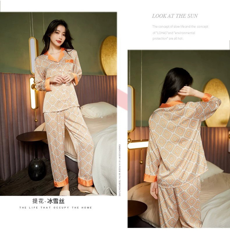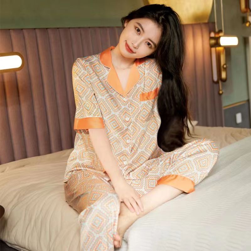 여성용 고급 여름 반팔 잠옷, 실내외 겸용 루즈핏 시원한 체크무늬 얇은 투피스 아이스 실크 잠옷스토어 가기