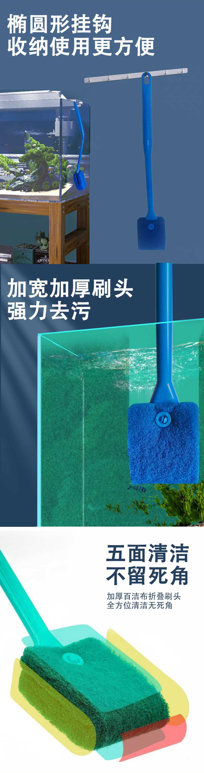 유리 벽 청소 브러시 조류 청소 도구 스폰지 브러시 긴 막대 브러시 유리 브러시 어항 수족관 청소 브러시