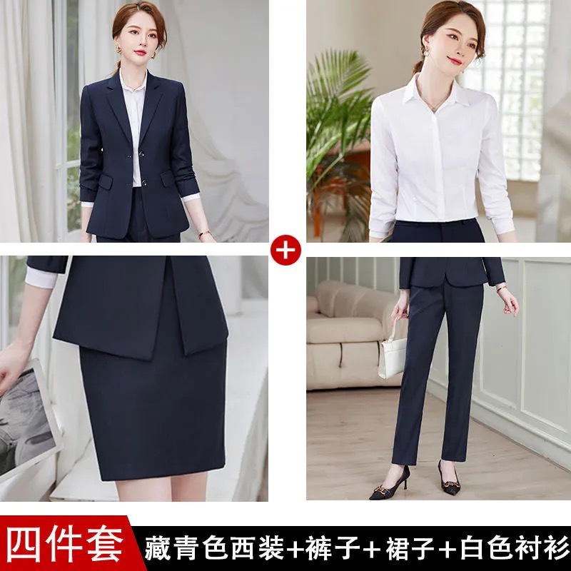 • [4종세트] 네이비블루 슈트+바지+스커트+셔츠