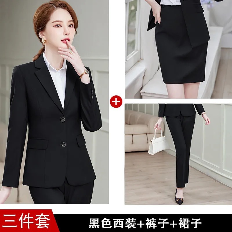 • [3종세트] 블랙 슈트 + 스커트 + 셔츠