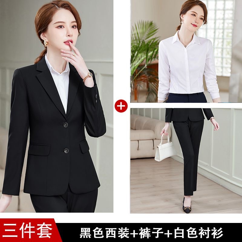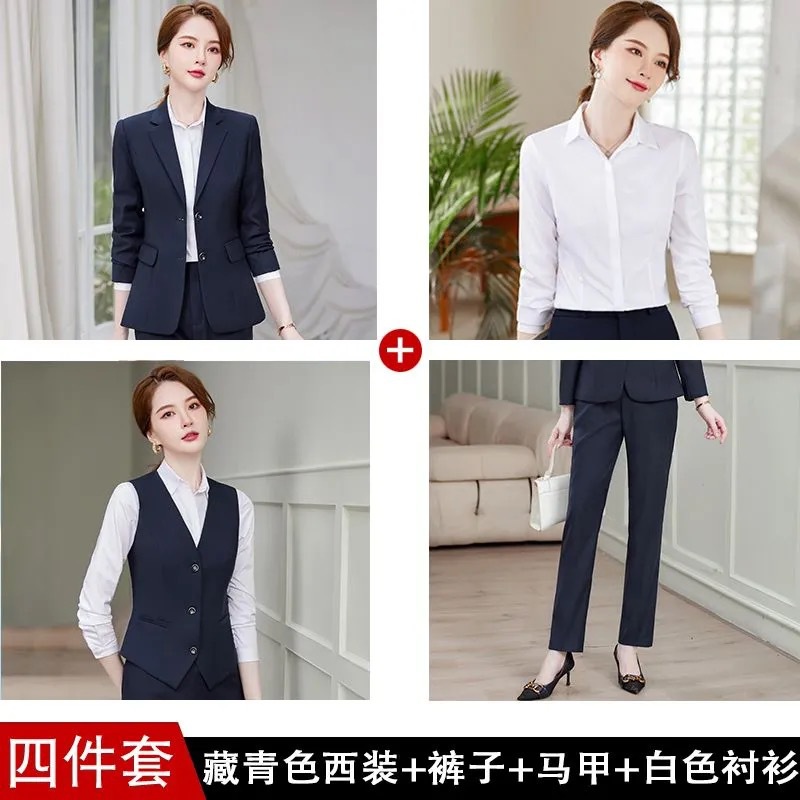 새로운 비즈니스 복장 여성의 네이비 폭발 기질 세트 세트 블랙 더블 버튼 공식 세트 인터뷰 바지스토어 가기