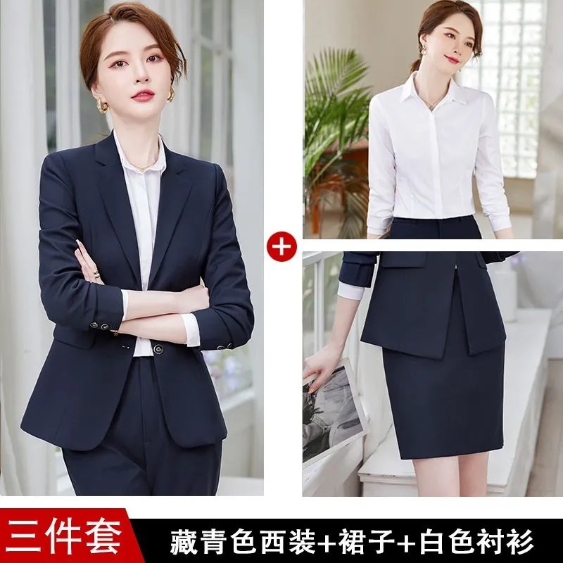 • [3종세트] 네이비블루 슈트+스커트+셔츠