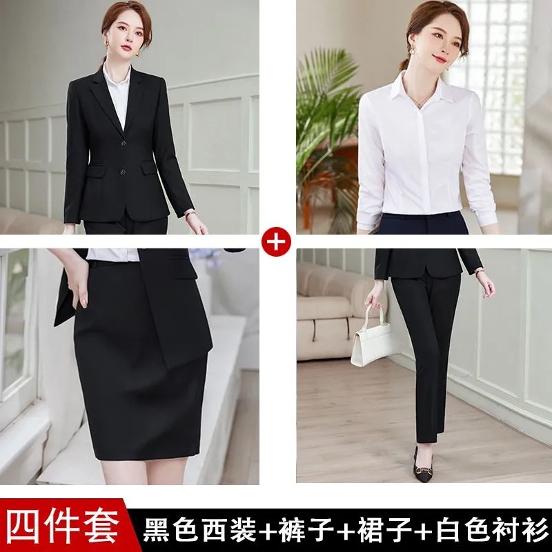 • [4종세트] 블랙 슈트 + 바지 + 스커트 + 셔츠