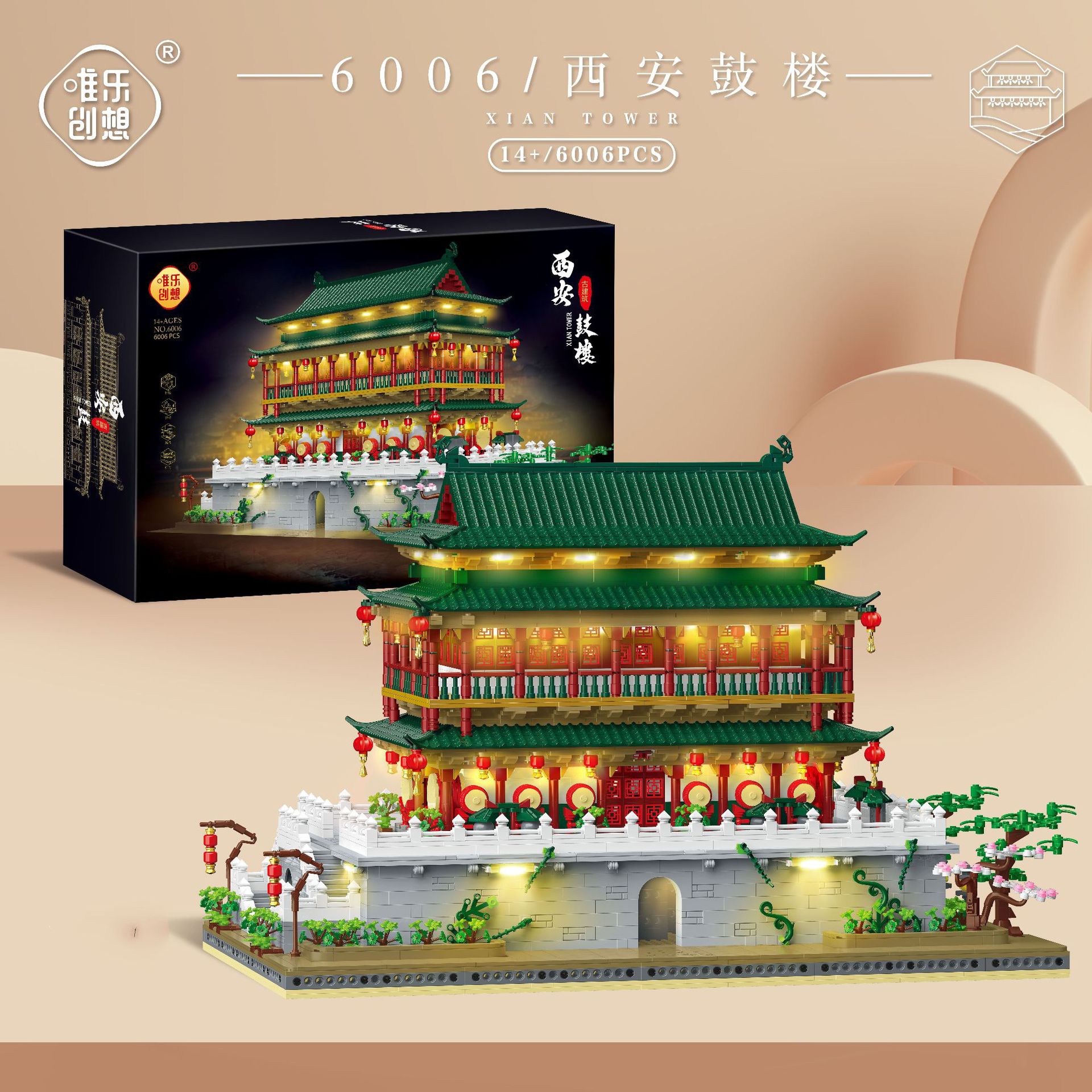 웨이 르 Chuangxiang MINI 입자 빌딩 블록 퍼즐 6001-6002 타이탄 케 조명과 함께 Xi 'an 드럼 타워 배치