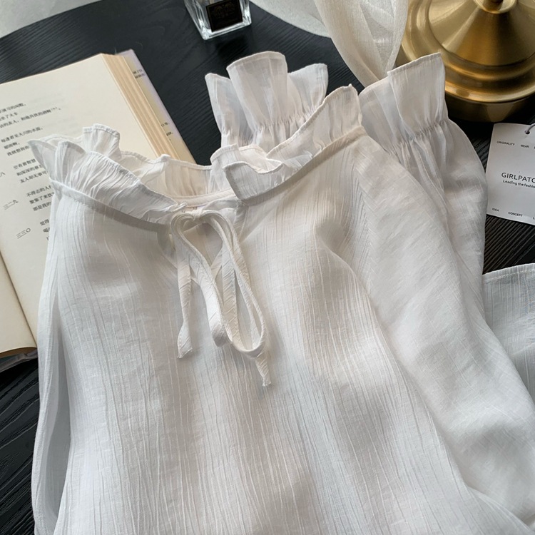 Auriculata 엣지 레이스 쉬폰 셔츠 여성용 서양식 내베이스 셔츠 한국 스타일 봄 새로운 2024 우아한 작은 셔츠