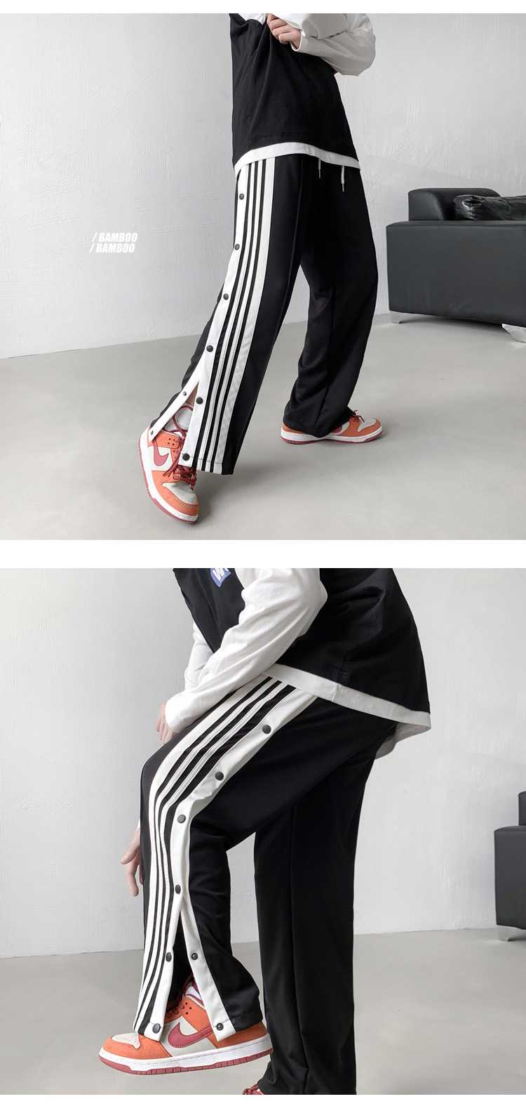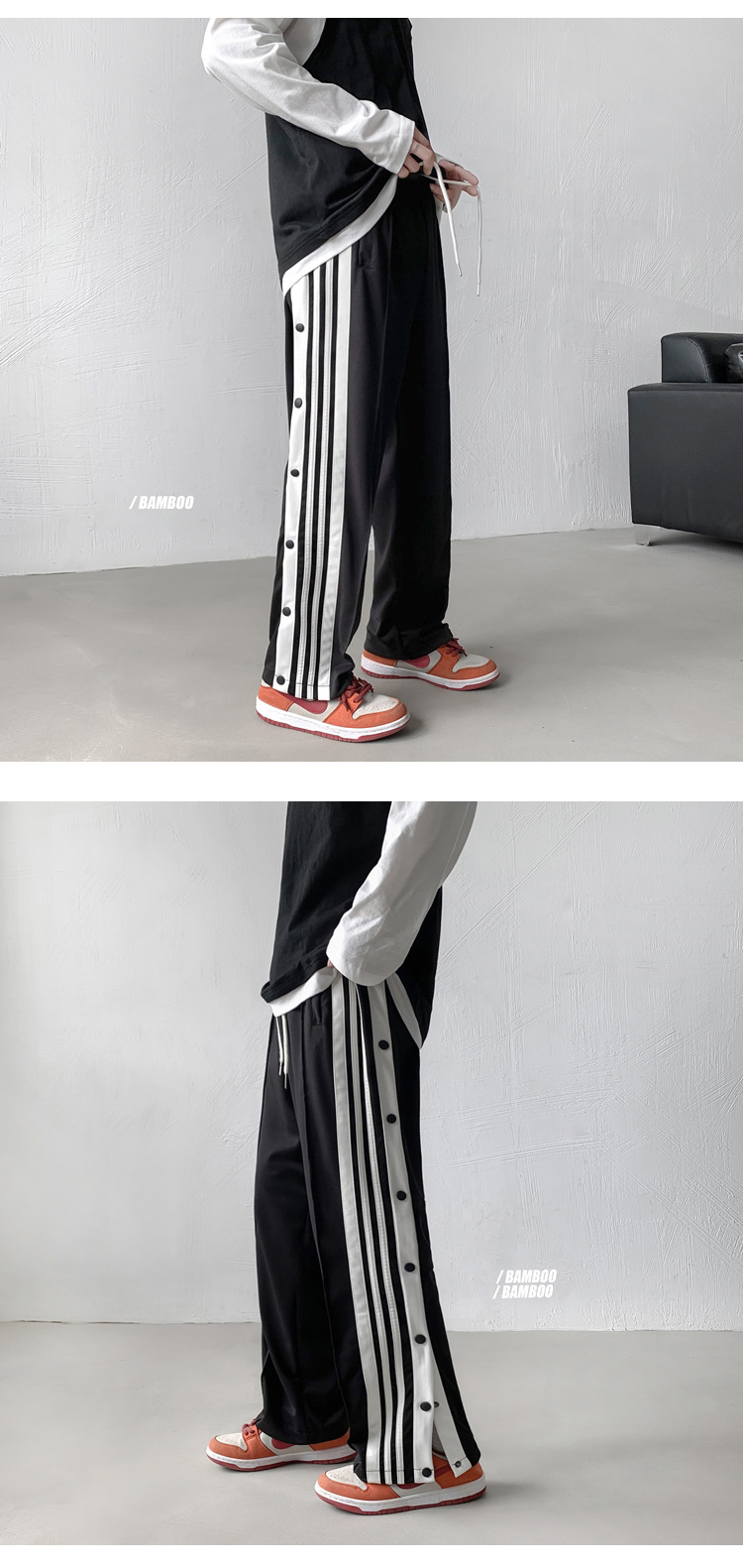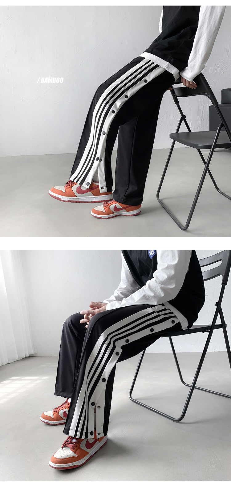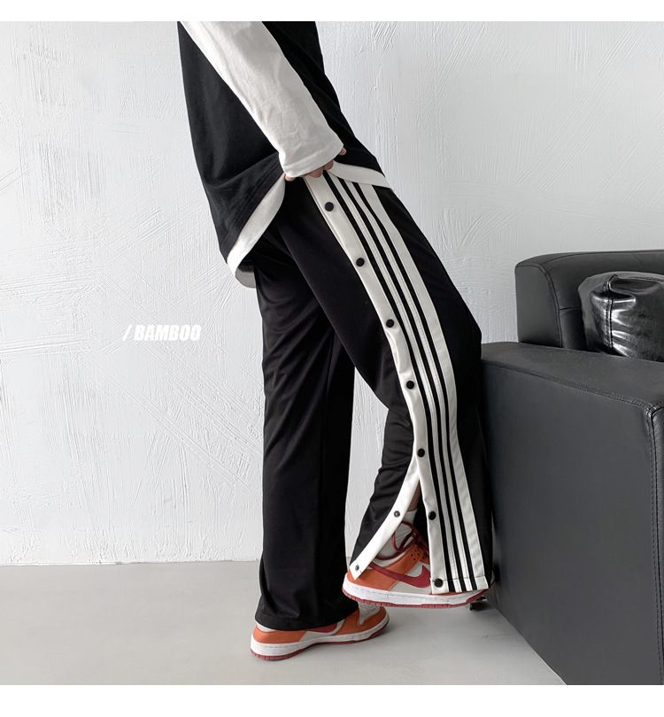 秋季新品ins潮牌侧排扣阔腿宽松运动裤男百搭学生直筒潮流条纹