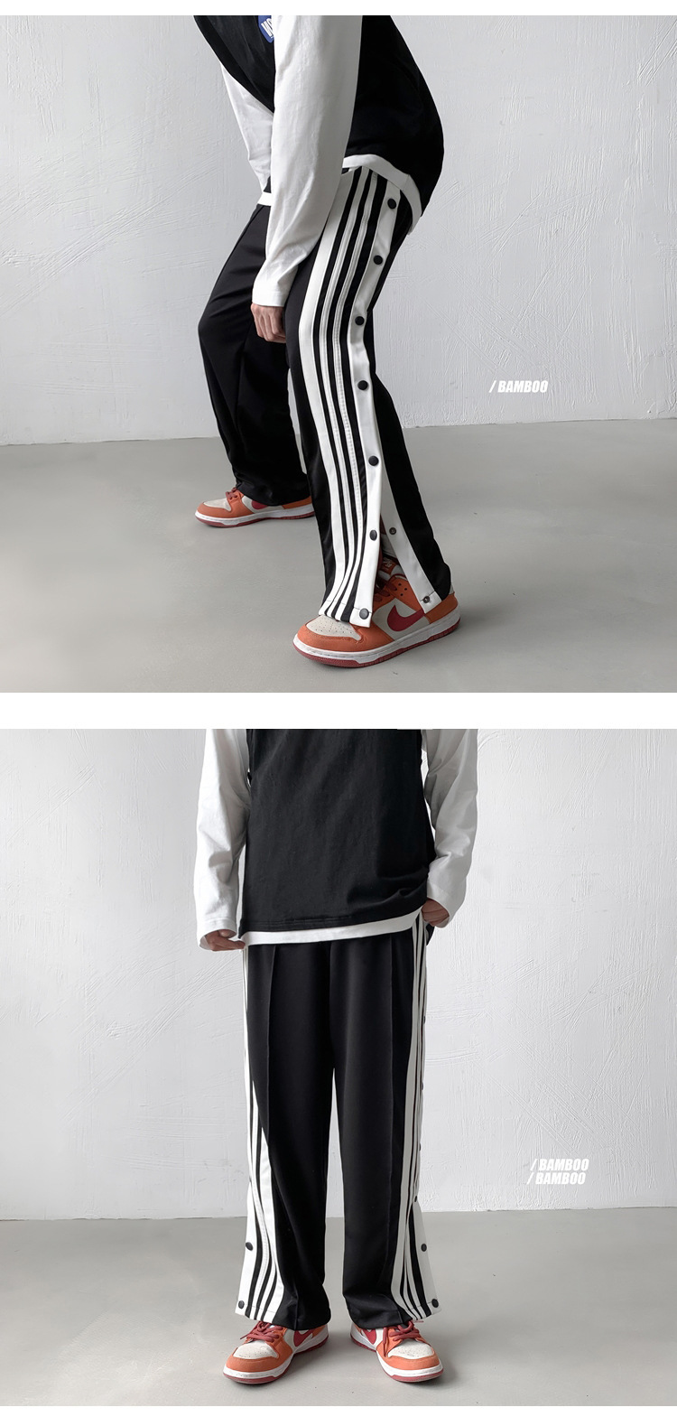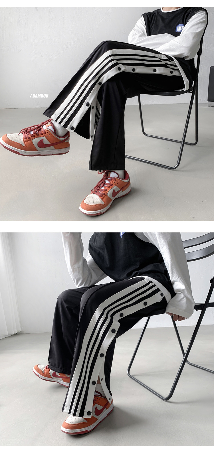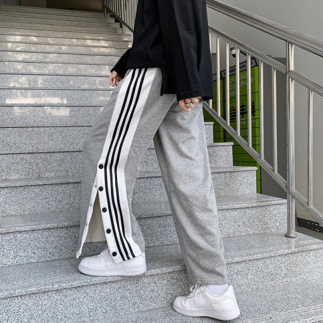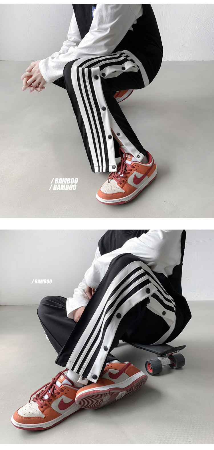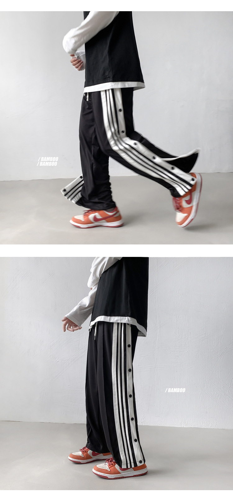 秋季新品ins潮牌侧排扣阔腿宽松运动裤男百搭学生直筒潮流条纹