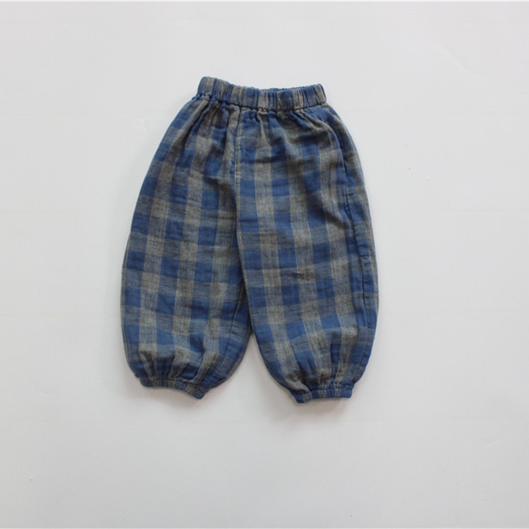한국식 소녀 바지 가을 어린이 바지 캐주얼 격자 무늬 소년 아기 안티 모기 바지 느슨한 통기성 면 다이파