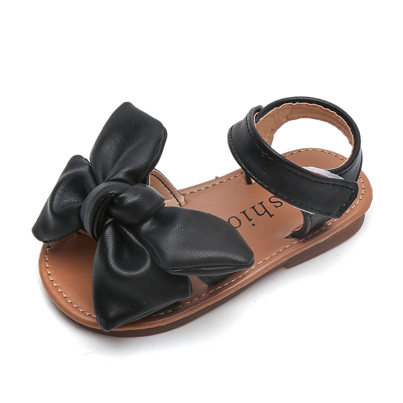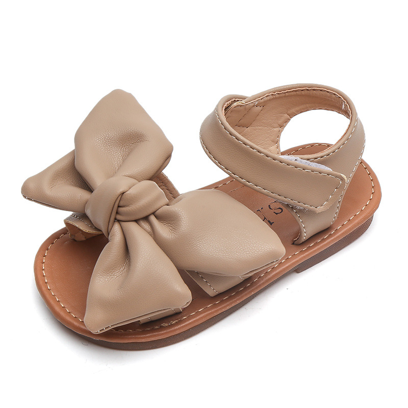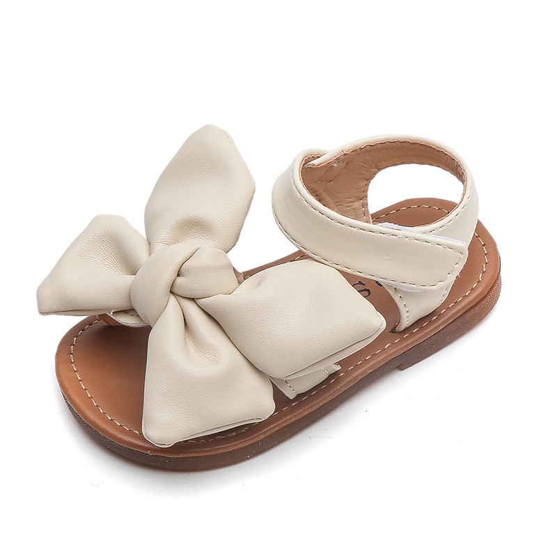 2024 여름 새로운 한국 스타일 간단한 부드러운 밑창 소녀 샌들 큰 활 작은 아기 해변 신발 캐주얼 어린이 신발스토어 가기