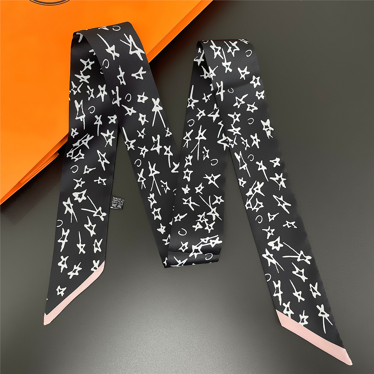 2022 새로운 Xiaoxiang 홈 스타 같은 스타일 실크 넥타이 가방 스카프 긴 리본 헤어 밴드 세트 스카프 여성
