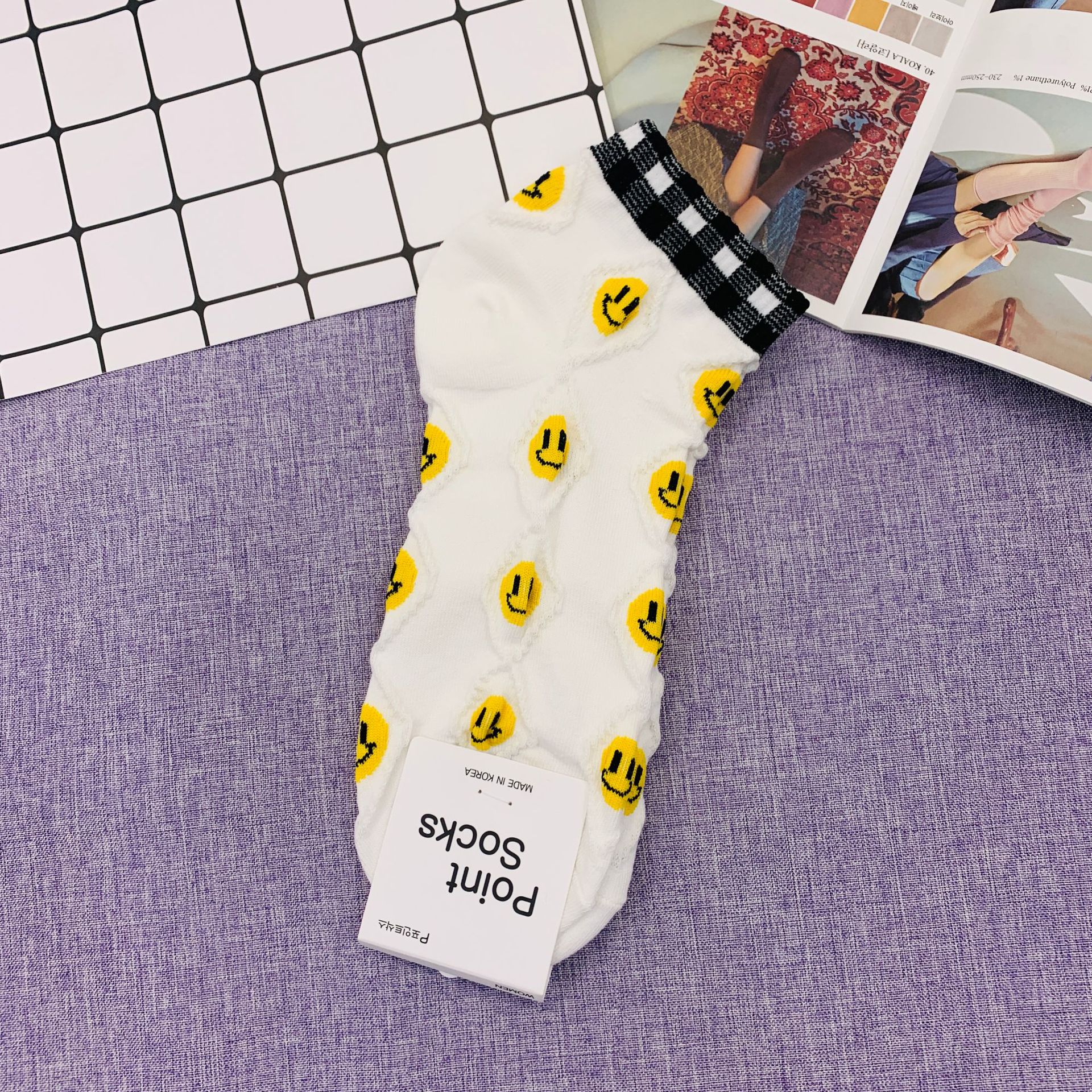 한국 동대문 봄과 여름 새로운 전체 상점 과일 스마일 색상 매칭 짧은 양말 신선한 스타일 한국 스타일