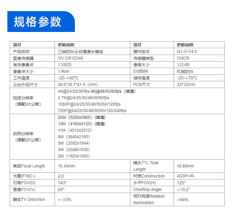 G1-OV12D40 카메라 모듈 1100 만 화소 미니 3 축 흔들림 방지 짐벌 4K 카메라 모듈