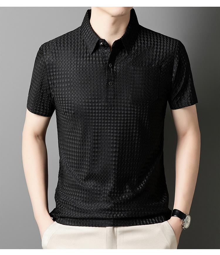 트렌디 한 반팔 폴로 셔츠 여름 남성 캐주얼 패션 반팔 포켓 반팔 티셔츠 스트레치 라펠 탑