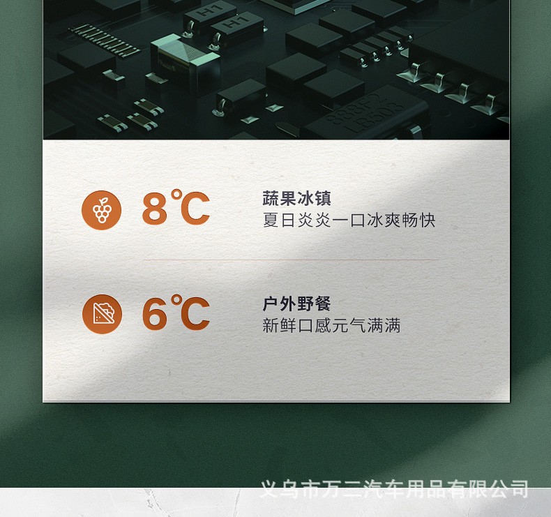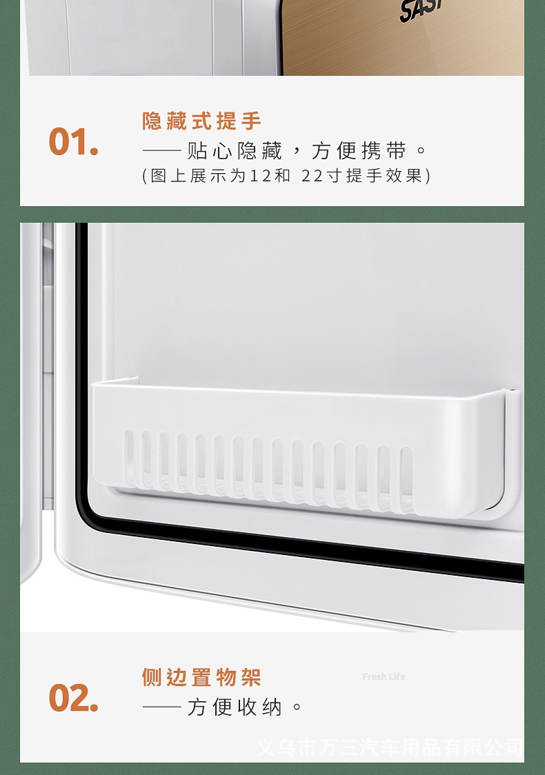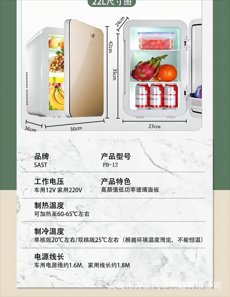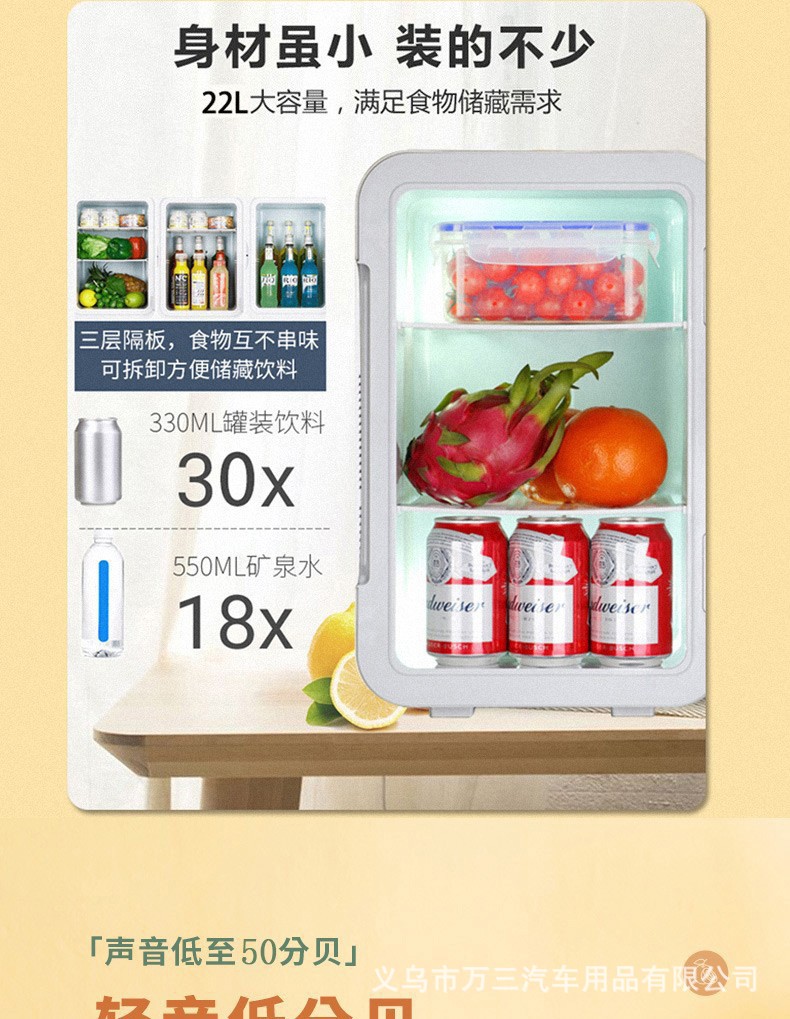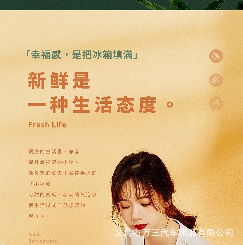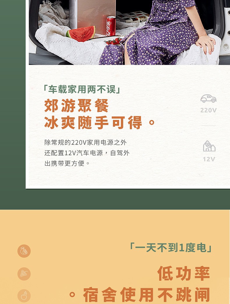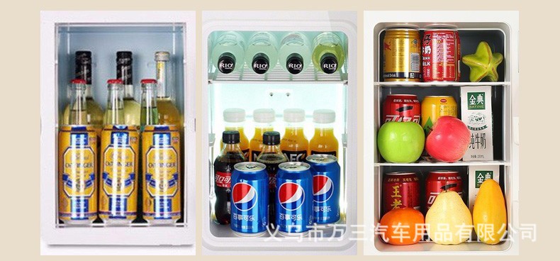 【车载冰箱适用范围】:适用于饮料、食物、水果、化妆品、牛奶的保鲜储存及保温。单核不能放肉类,不能冷冻。