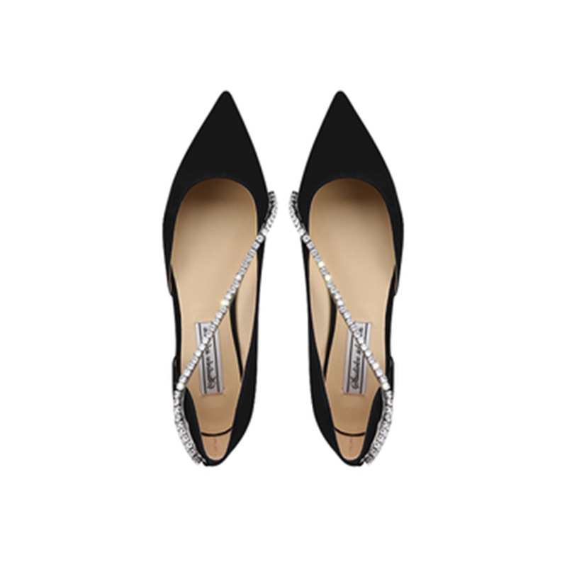 포도 엄마 스튜디오 절묘한 패션 뾰족한 얕은 입 라인 석 체인 측면 빈 섹시한 낮은 굽 단일 신발 여성용 여름스토어 가기