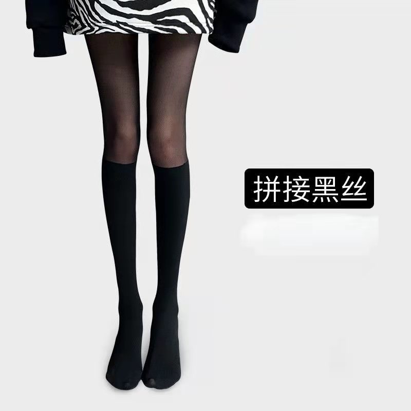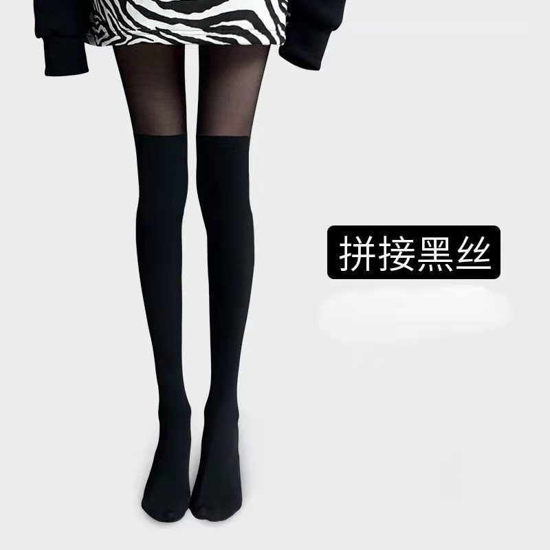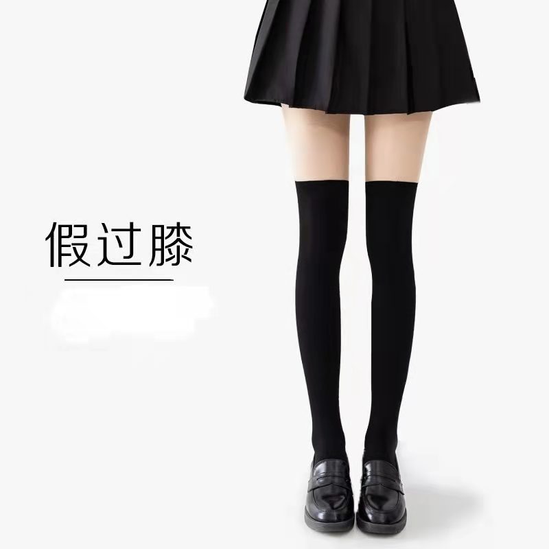 가짜 높은 튜브 스티칭 블랙 실크 스타킹 여성의 얇은 가짜 허벅지 위 무릎 양말 섹시 귀여운 바닥 팬티 스타킹 JK 인터넷 인기